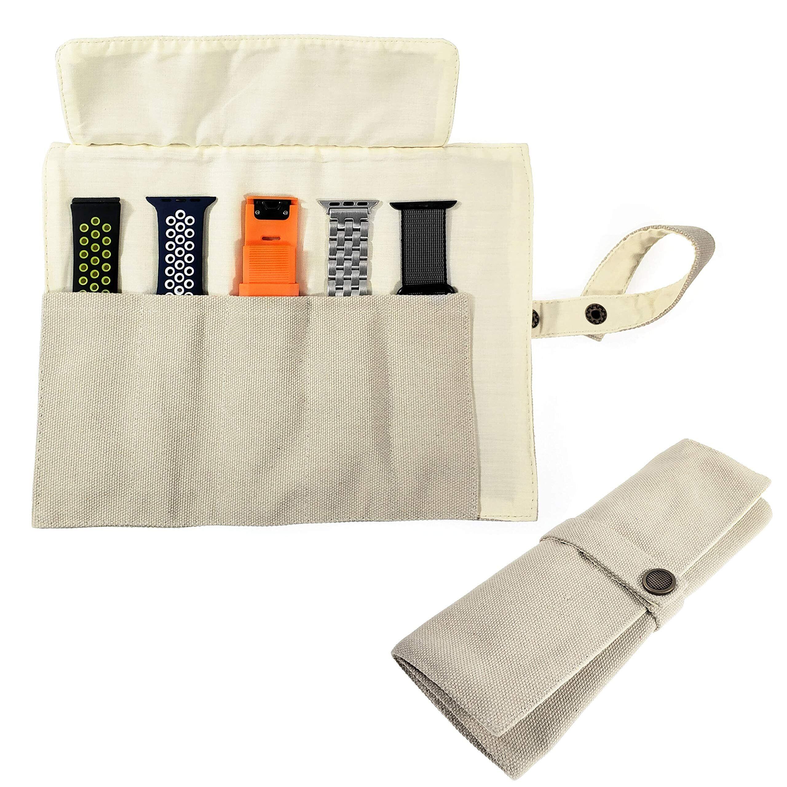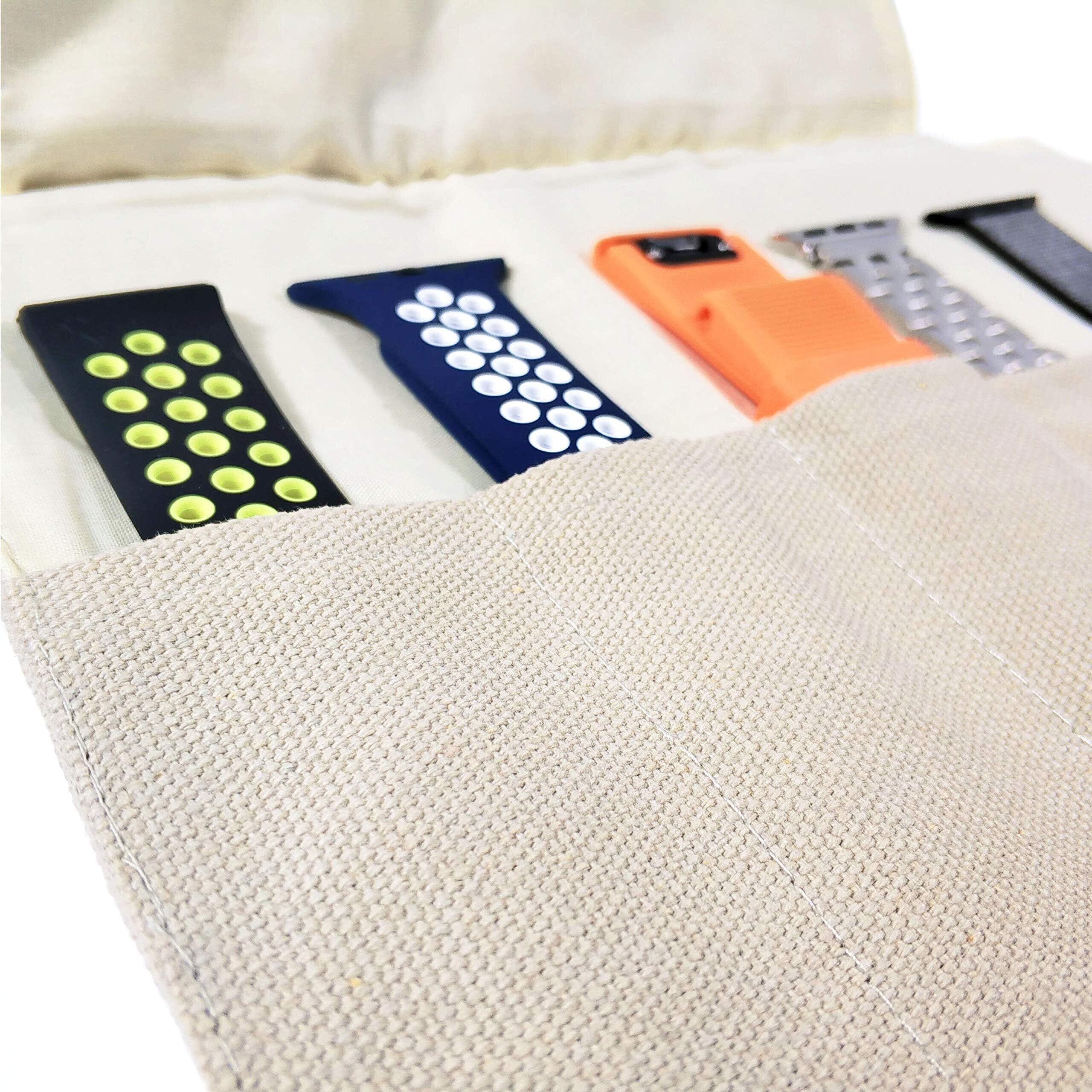 スマートウォッチバンド 収納バッグ 5本格納 キャンバスポータブル ウォッチバンド ホルダー Apple/Garmin/Samsungなどのスマートウォッチ用交換バンドを保管
