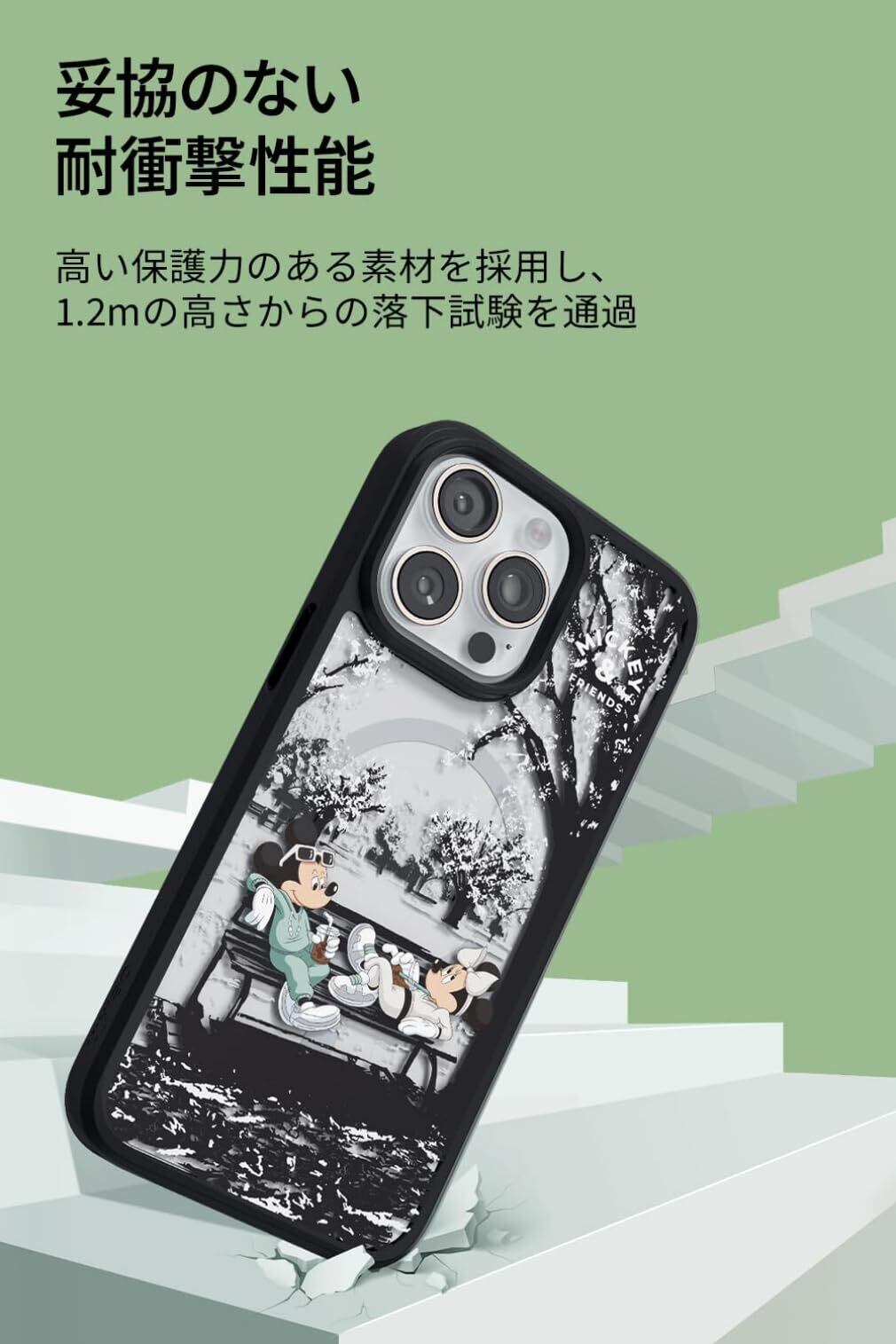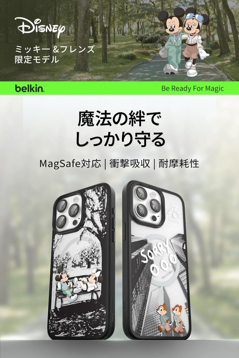 【ミッキー&ミニー】Belkin iPhone 15用ケース MagSafe対応 マグネット搭載 薄型 超耐衝撃 UV耐性 黄ばみ防止 ソフトTPU ブラック MSA016qcBS-DY