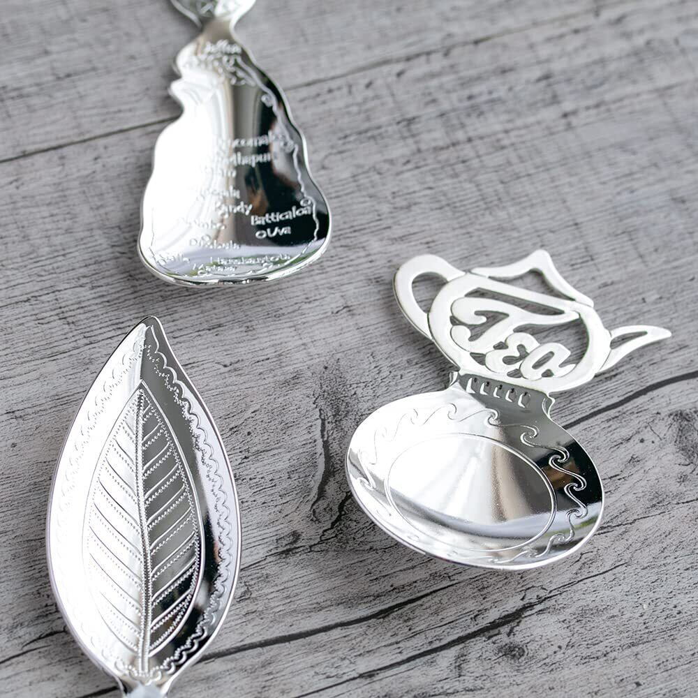 シルバーメッキの輝きがとても上品で、ハンドル部もティーポット型をしおり、ティータイムをより楽しく盛り上げてくれます。