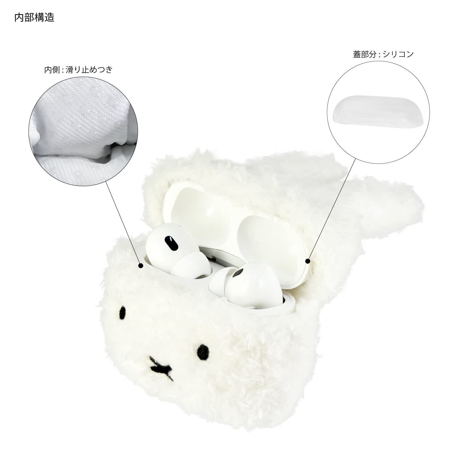 グルマンディーズ(Gourmandise) ミッフィー AirPods Pro(第2世代)/AirPods Pro 対応 フラッフィーケース フェイス MF-368WH