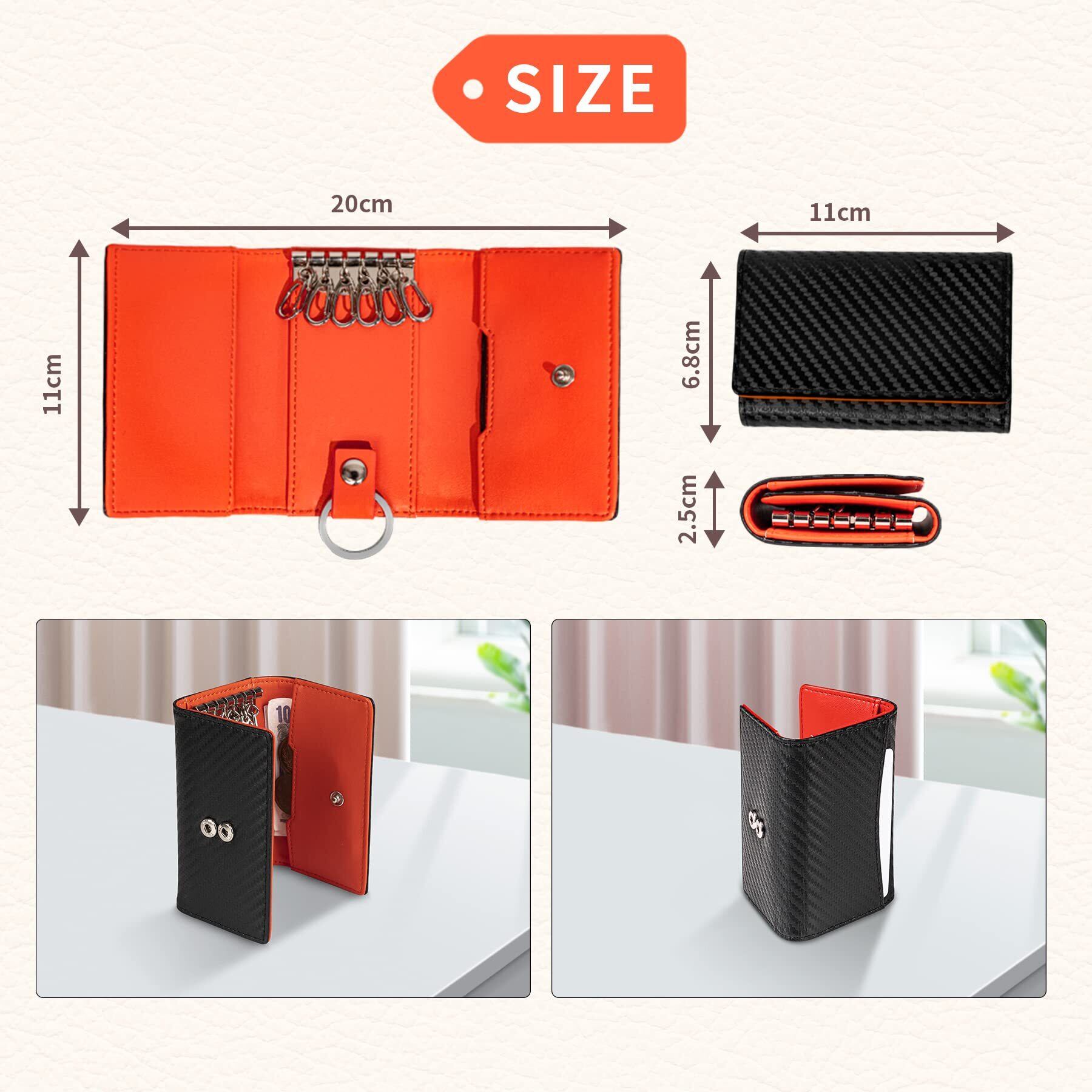 【多機能&便利】キーケースには6本の鍵を収納できます。取り外し可能なキーホルダー付き。住宅用キー、車のスマートキー、自転車のキー、オフィスキーやロッカーキーなどを一緒に収納できます。さらに、レシートやキャッシュカード、ICカードなども収納可能なポケットがあり、紛失の心配を解消します。