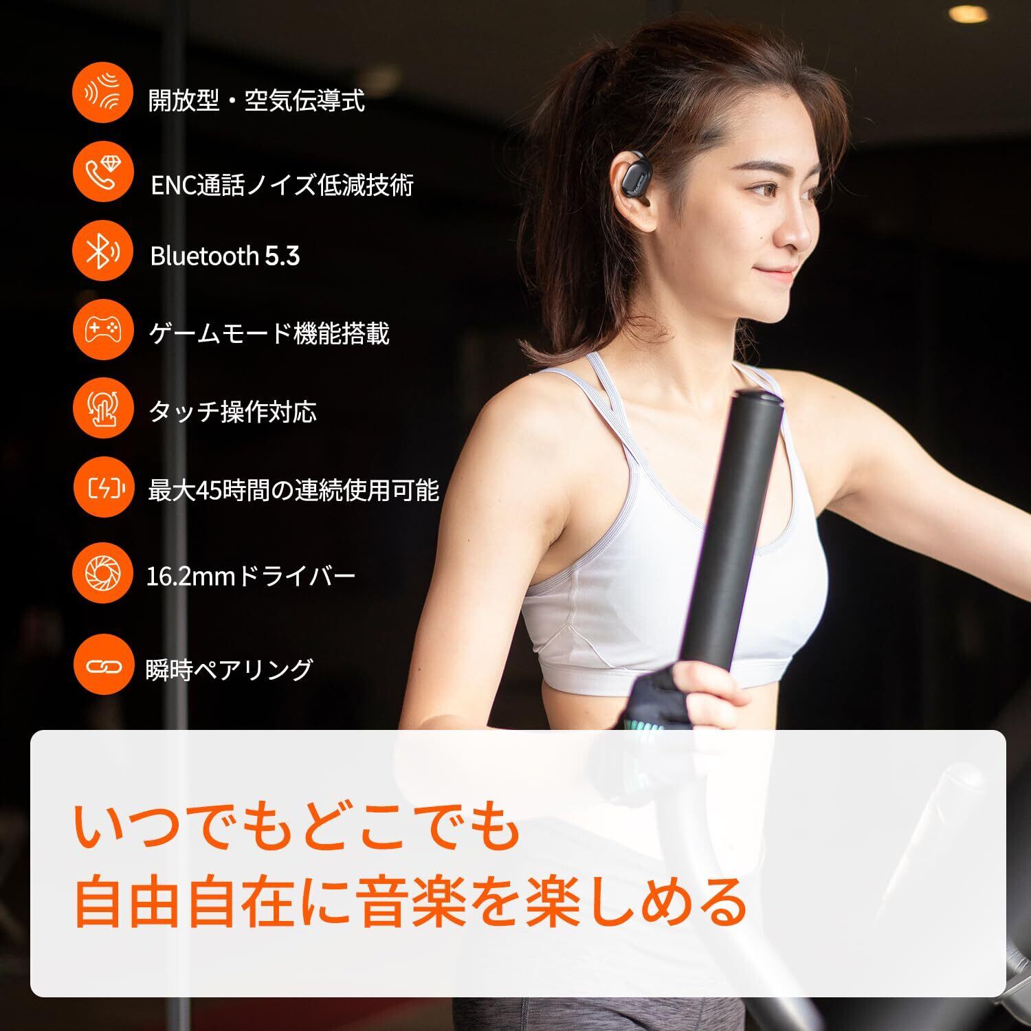 TRUEFREE O1 耳掛け式 ワイヤレスイヤホン bluetooth5.3 耳を塞がない オープンイヤー マルチポイント 45時間連続使用 ながら聴き 開放型 ブルートゥースイヤホン アプリ対応 AAC/SBC スポーツ イヤホン 快適な装着感 圧迫感ゼロ ブラック | hananoki