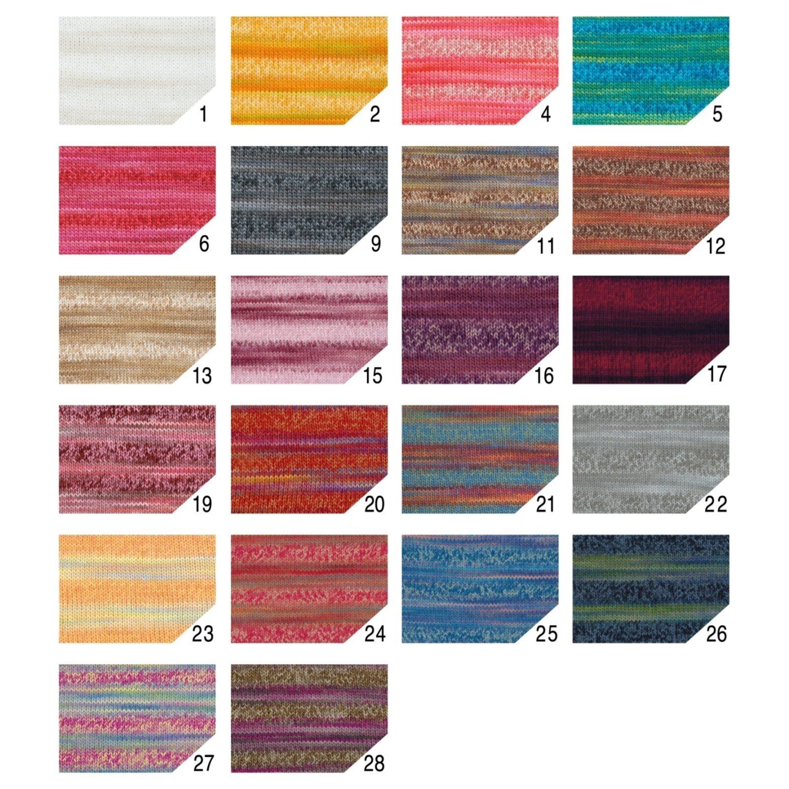 5色のかすりと杢糸が交互に切り替わり、楽しいカラー変化が楽しめるロービングヤーンです。