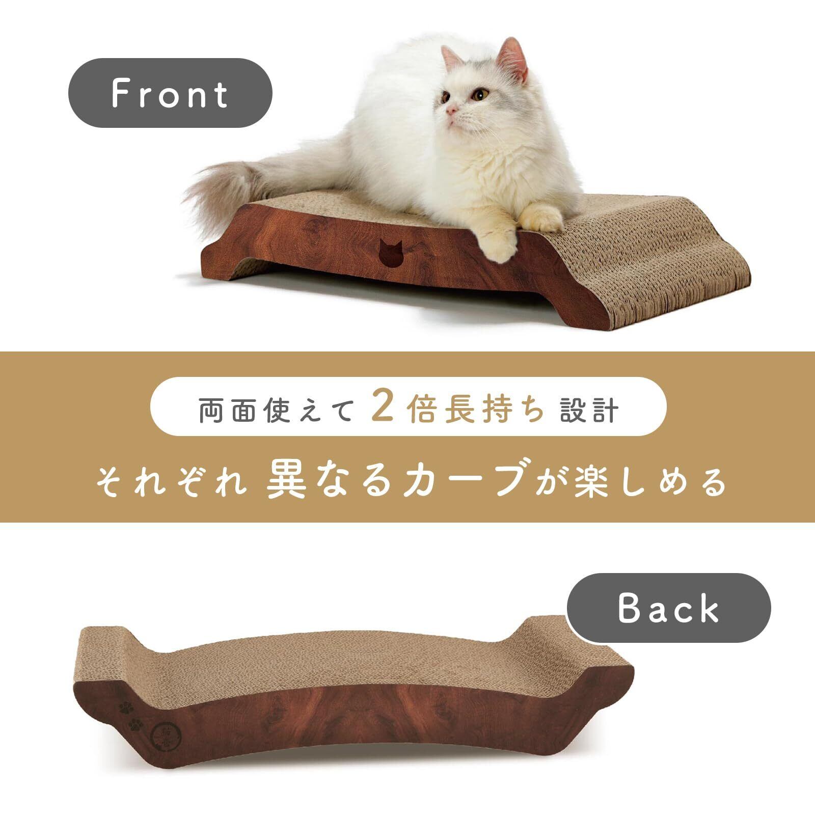 【両面使えてお得】バリバリベッドは、両面ともダンボールになっています。片面がボロボロになった後は、反対面と使えるので、長くお使いいただけます。どちらの面も絶妙な角度のカーブで猫のやわらかいからだにフィットします。
