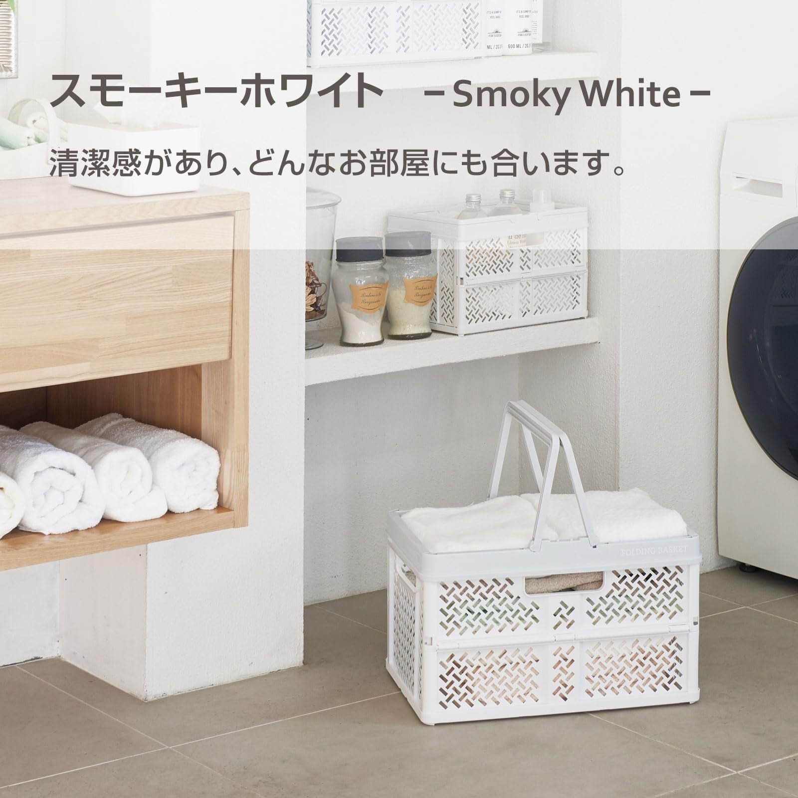 天馬(Tenma) 折りたたんでコンパクトになる持ち手付きの収納ボックス 完成品 折りたたみバスケット Mサイズ お部屋に馴染むデザインの折り畳みコンテナ オリコン カゴ A4ファイルがぴったりのバスケット プラスチック 【組立不要】 【色 スモーキーホワイト】 【サイズ M】 【幅39×奥行27×高さ26cm】【折りたたみ時 高さ5.5cm】