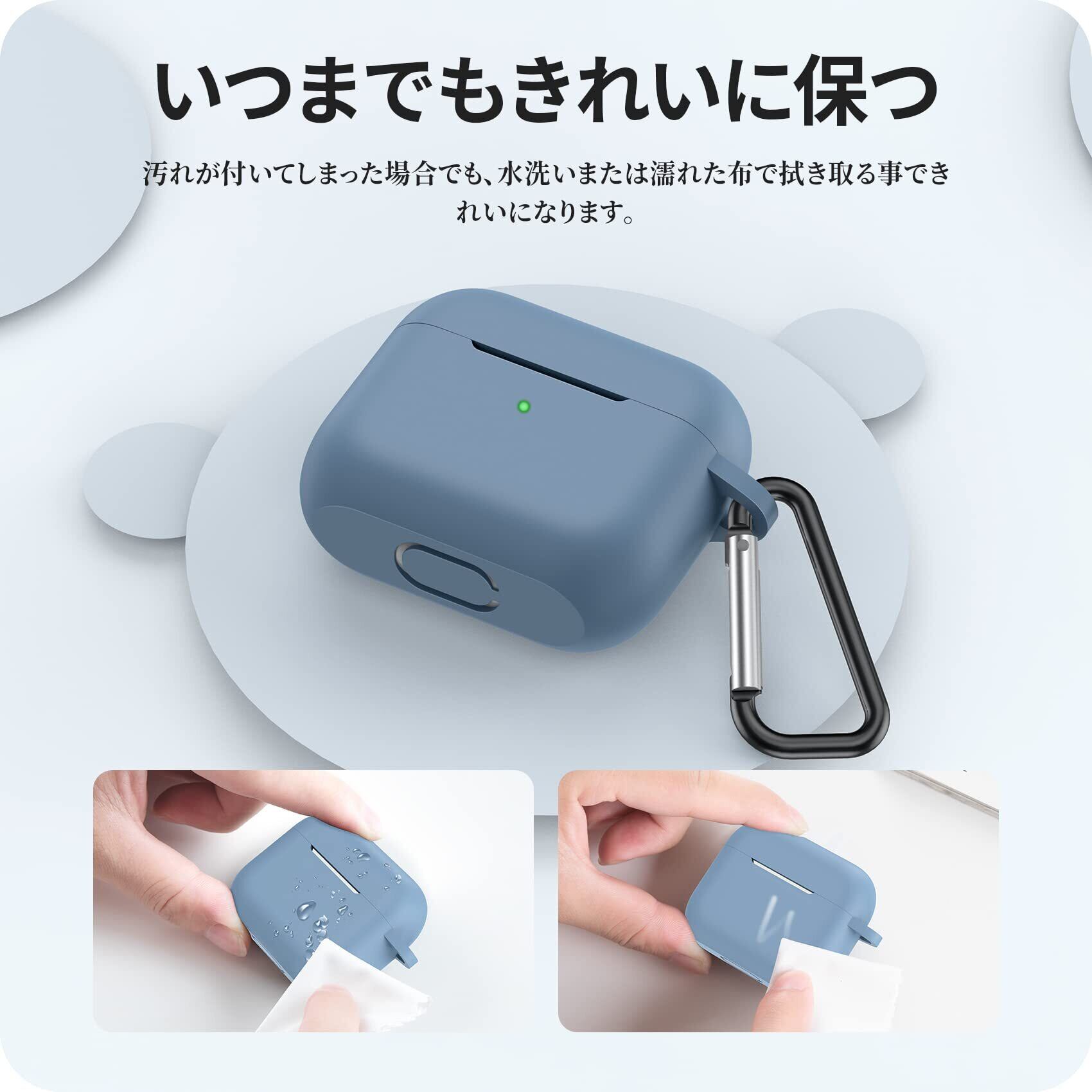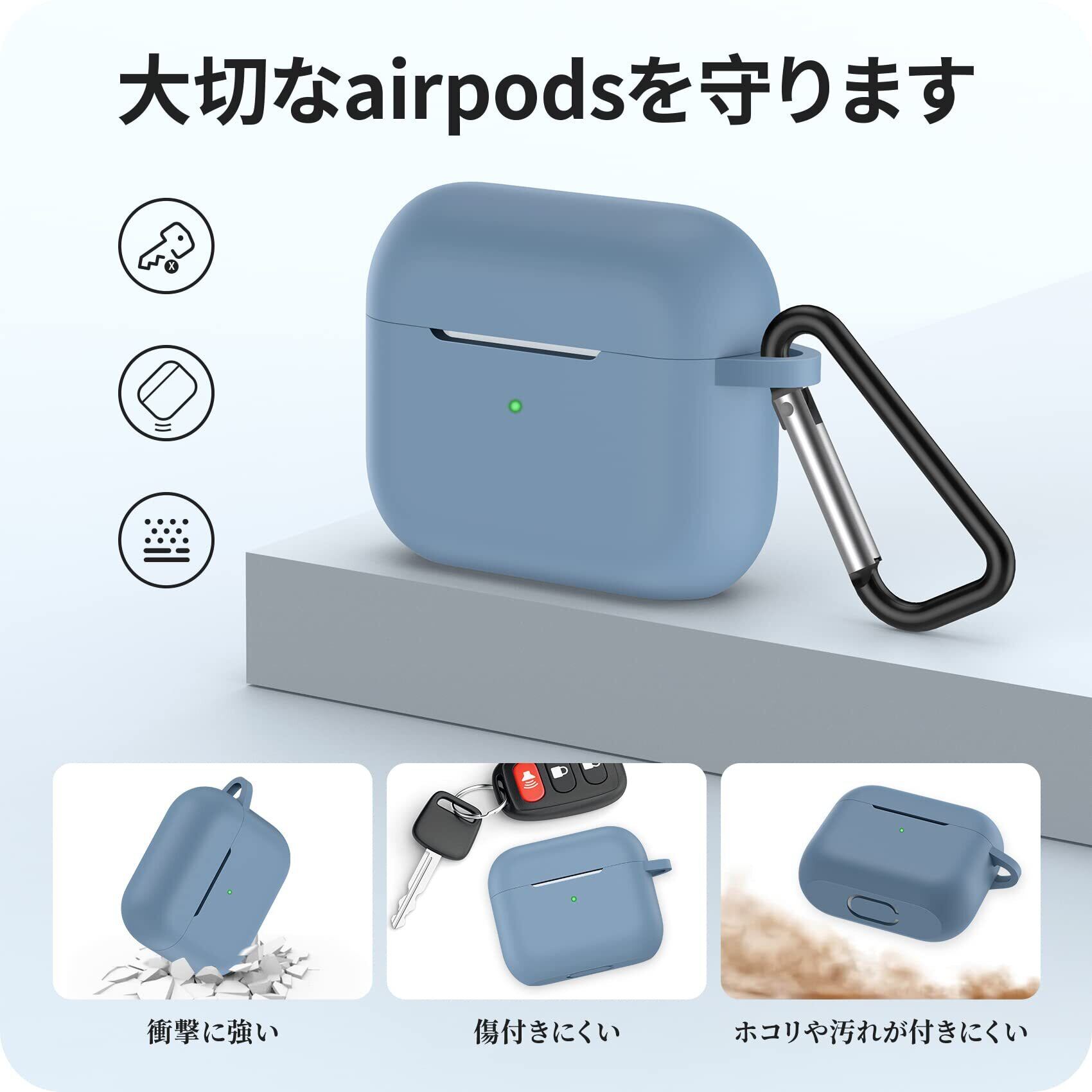 NIMASO ケース AirPods 3 ケース 2021 AirPods 第3世代 専用カバー エアーポッズ 3世代 シリコン 保護 ケース カラビナ付き ワイヤレス充電対応 (カウボーイブルー) NEC22C448 | hananoki