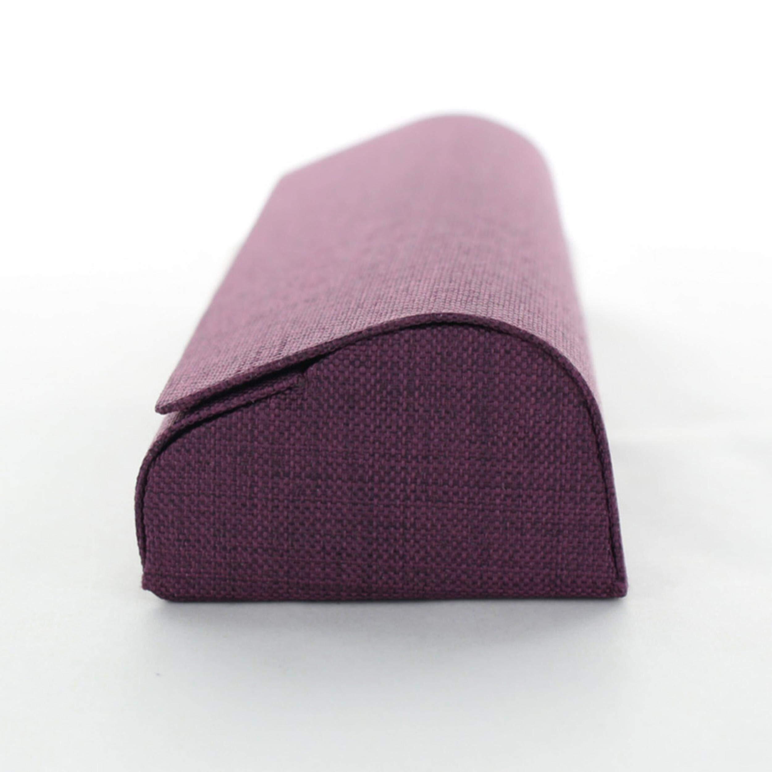 和服の帯のようなシルキーな生地を全面に張り合わせた、和風テイストのメガネケース。芯材にはアルミを使用し軽量仕上げでハード素材がしっかりメガネを守ります。マグネット式で開閉が心地よくストレスフリー。女性に人気のデザイン。