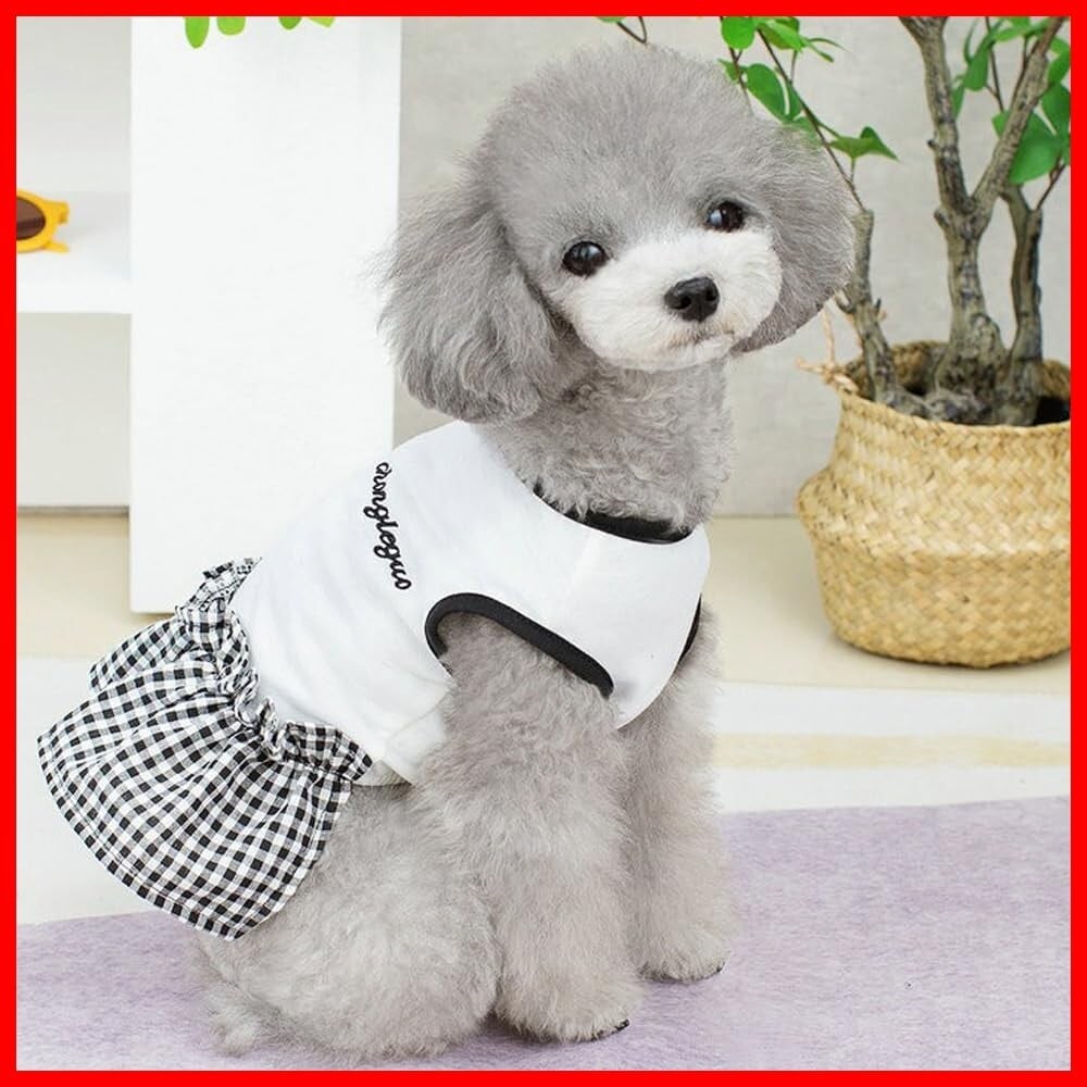 【可愛い】単色のTシャツ、とチェック柄の裾、おしゃれ なワンピース設計して、毎日一緒に生活する愛犬が自宅でも散歩中でも、外出先でもこんなオシャレな服を着せると、注目を浴びるアイテムに間違いなし。