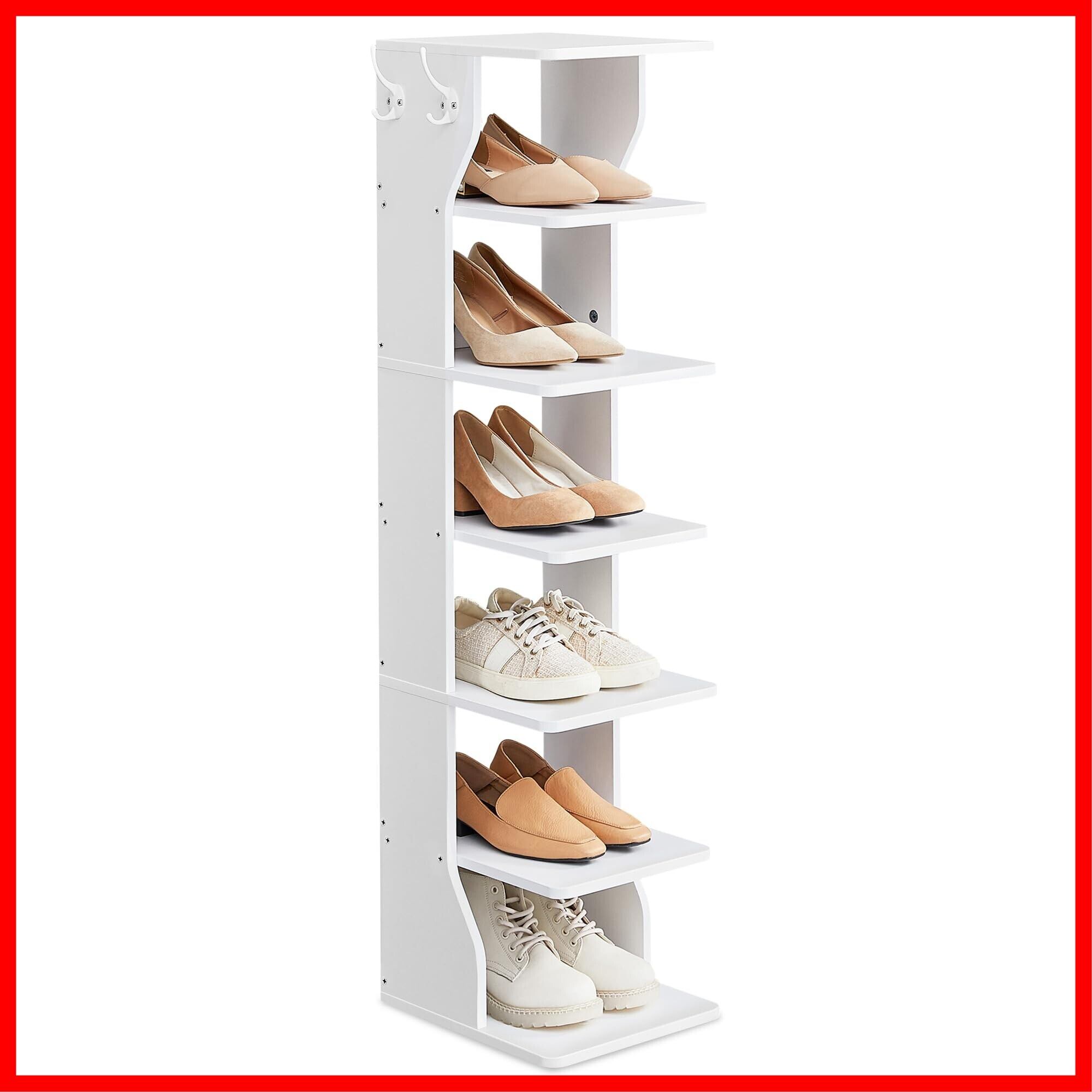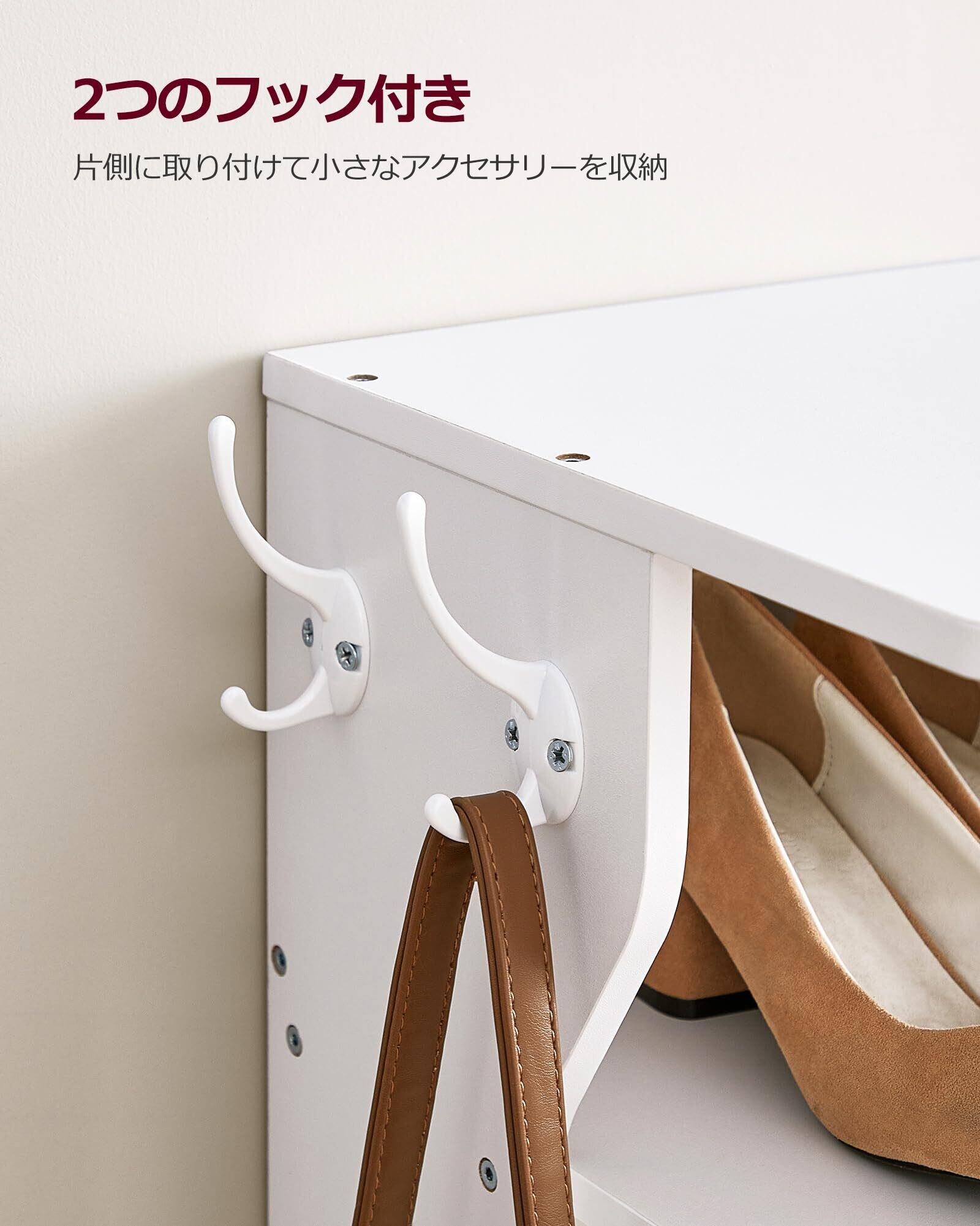 VASAGLE シューズラック 7段 スリム 省スペース おしゃれ フック付き 木製 コーナーシューズラック 頑丈 シンプル 靴入れ 靴 収納 シューラック 下駄箱 シューズ スニーカー ホワイト LBS200T14V1 | hananoki