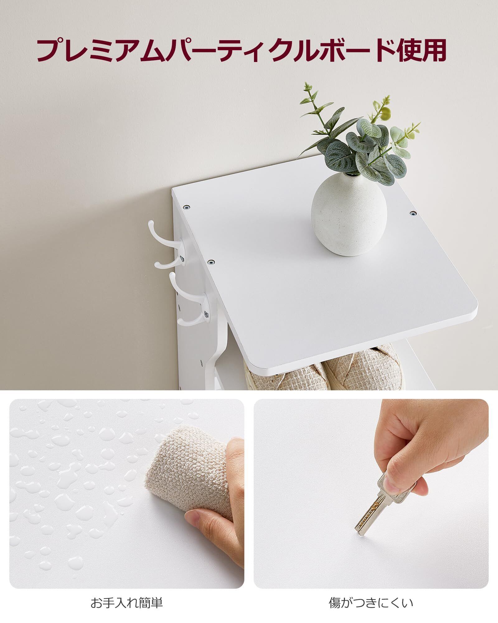 VASAGLE シューズラック 7段 スリム 省スペース おしゃれ フック付き 木製 コーナーシューズラック 頑丈 シンプル 靴入れ 靴 収納 シューラック 下駄箱 シューズ スニーカー ホワイト LBS200T14V1