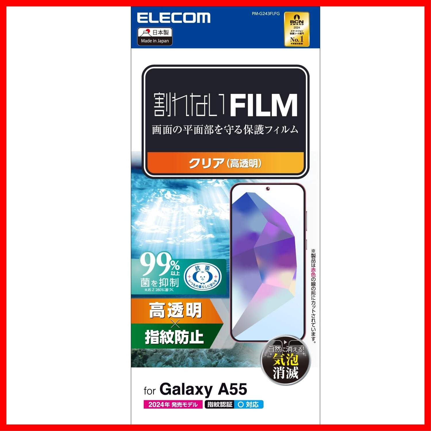 エレコム Galaxy A55 5G SC-53E フィルム 光沢 グレア 指紋認証 指紋防止 ハードコート 気泡ゼロ PM-G243FLFG