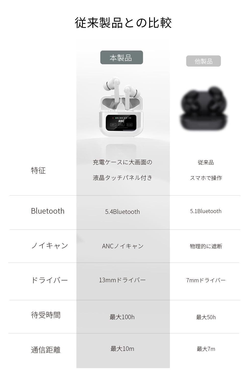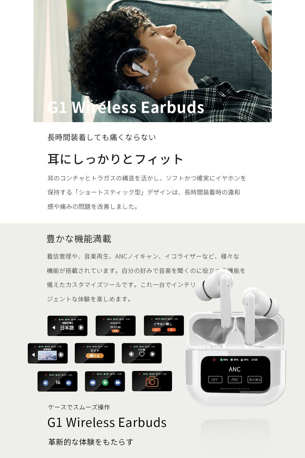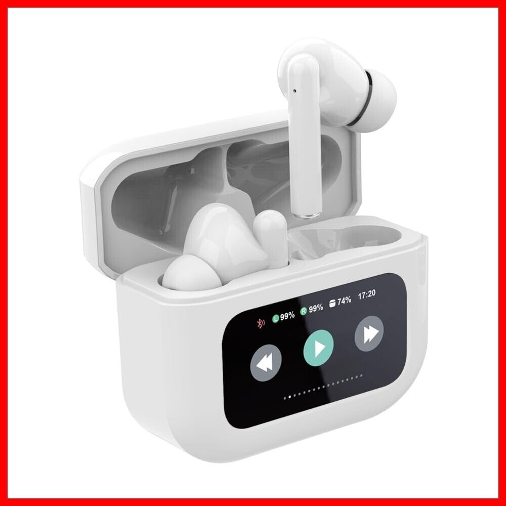 【2025新登場】明誠 ワイヤレスイヤホン Bluetooth 5.4 イヤホン タッチディスプレイ付き 液晶搭載ケース ANCノイズキャンセリング Hi-Fi音質 カナル型 左右分離型 片耳/両耳 タッチ操作 装着感快適 マイク内蔵 ハンズフリー通話(ホワイト)