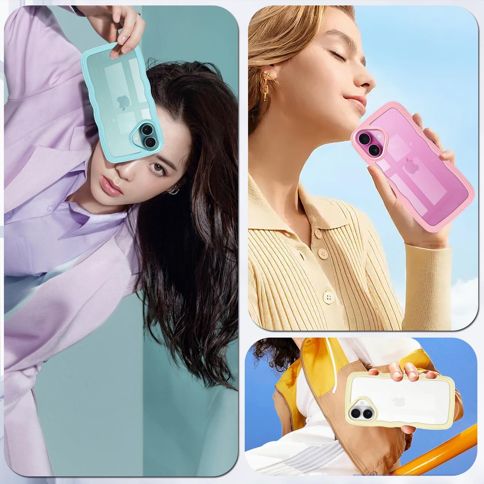 iPhone 16 plus 用 ケース クリア おしゃれ 韓国 可愛い 透明 スマホケース 耐衝撃 軽量 ストラップホール付き ワイヤレス充電 iphone16 plus 用 カバー 6.7インチ アイフォン16plus TPUカバー イエロー
