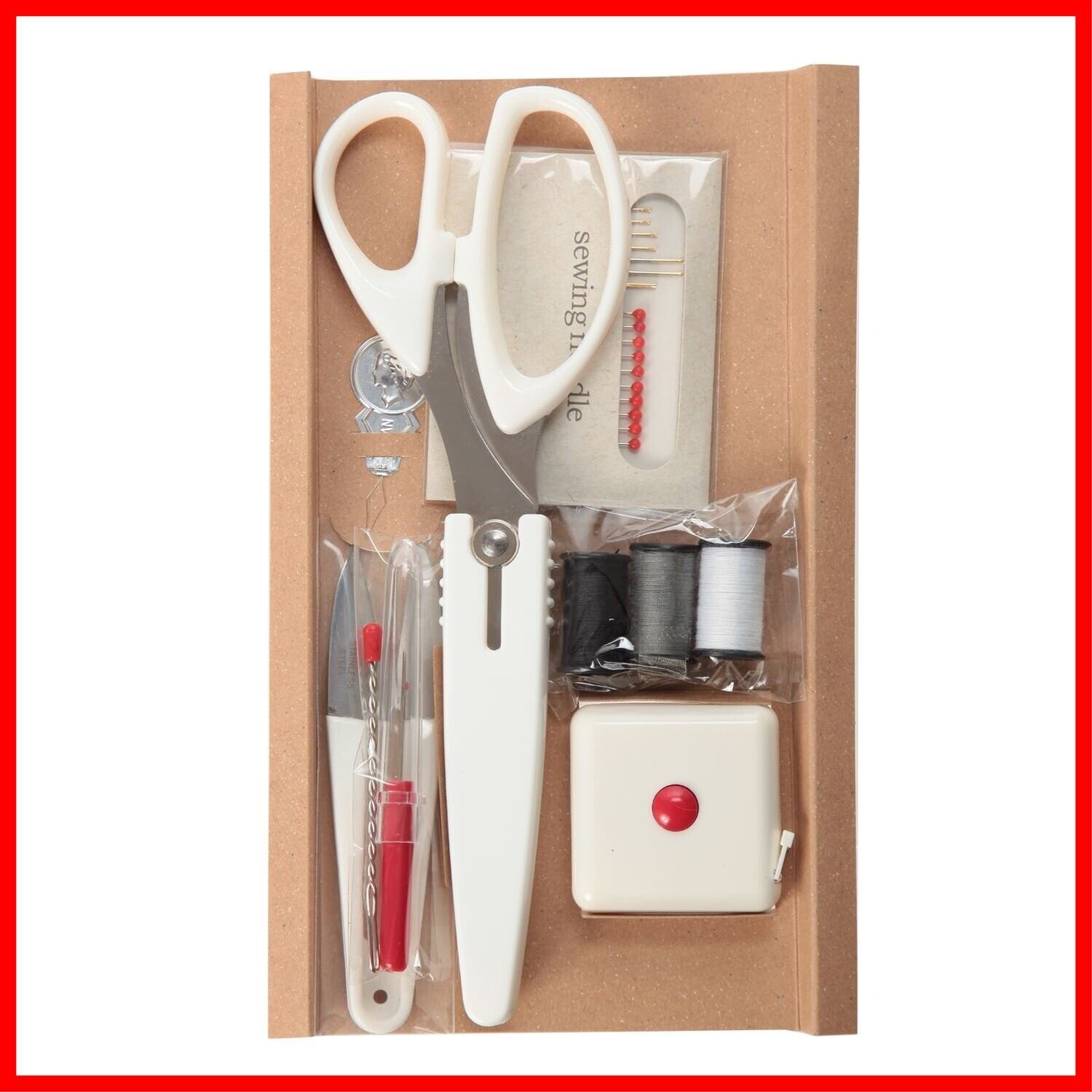 リッパー(鋼、PP、PS)、ひも通し(真鍮、ABS樹脂)、糸セット/白・黒・グレー(ポリエステル)、オートメシジャー1m巻(テープ部分:PVC、ボディ:ABS樹脂)、握りばさみ、裁ちばさみ 18cm(ステンレス、ABS樹脂)、針セット 待ち針10本(鋼線・ガラス)、長・中・短針各2本、刺しゅう針1本(鋼線)
