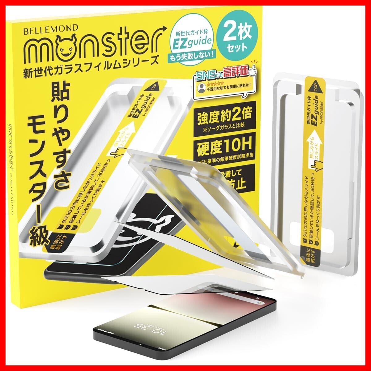 モンスターフィルム Xperia 5 IV 用 | 強化 ガラスフィルム 透明 クリア 保護 フィルム 硬度10H | エクスペリア ファイブ マーク フォー SO-54C SOG09 XQ-CQ44 対応 ベルモンド ガイド枠付き 2枚 セット B0783