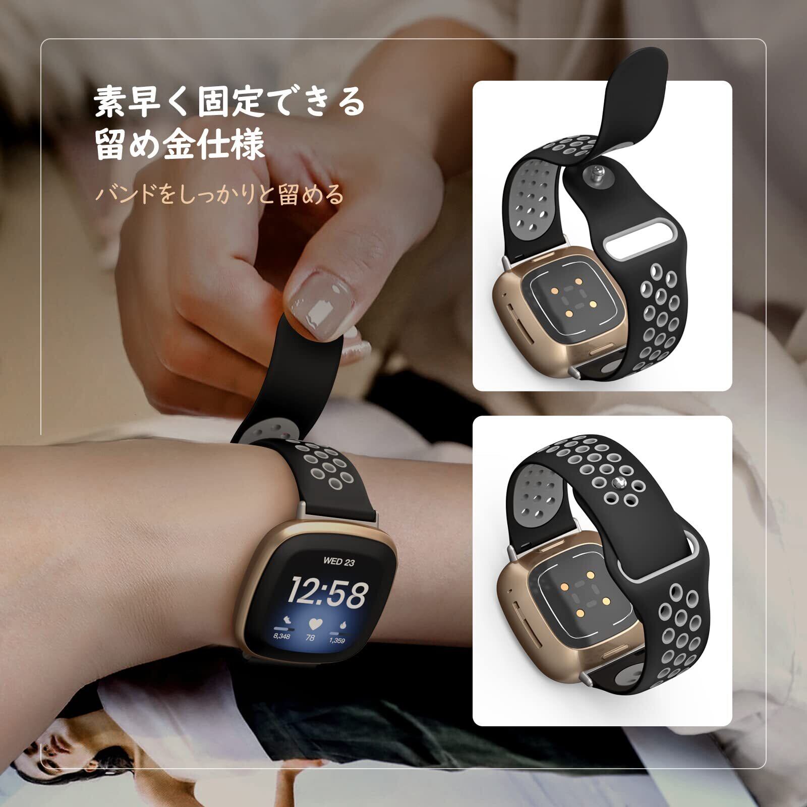 「対応機種」 当商品Fitbit Versa4/3/ Sense2/Senseに対応できる取り替えベルトとなります。他の機種に対応しておりません。ご購入になる前に、機種を確認してください。