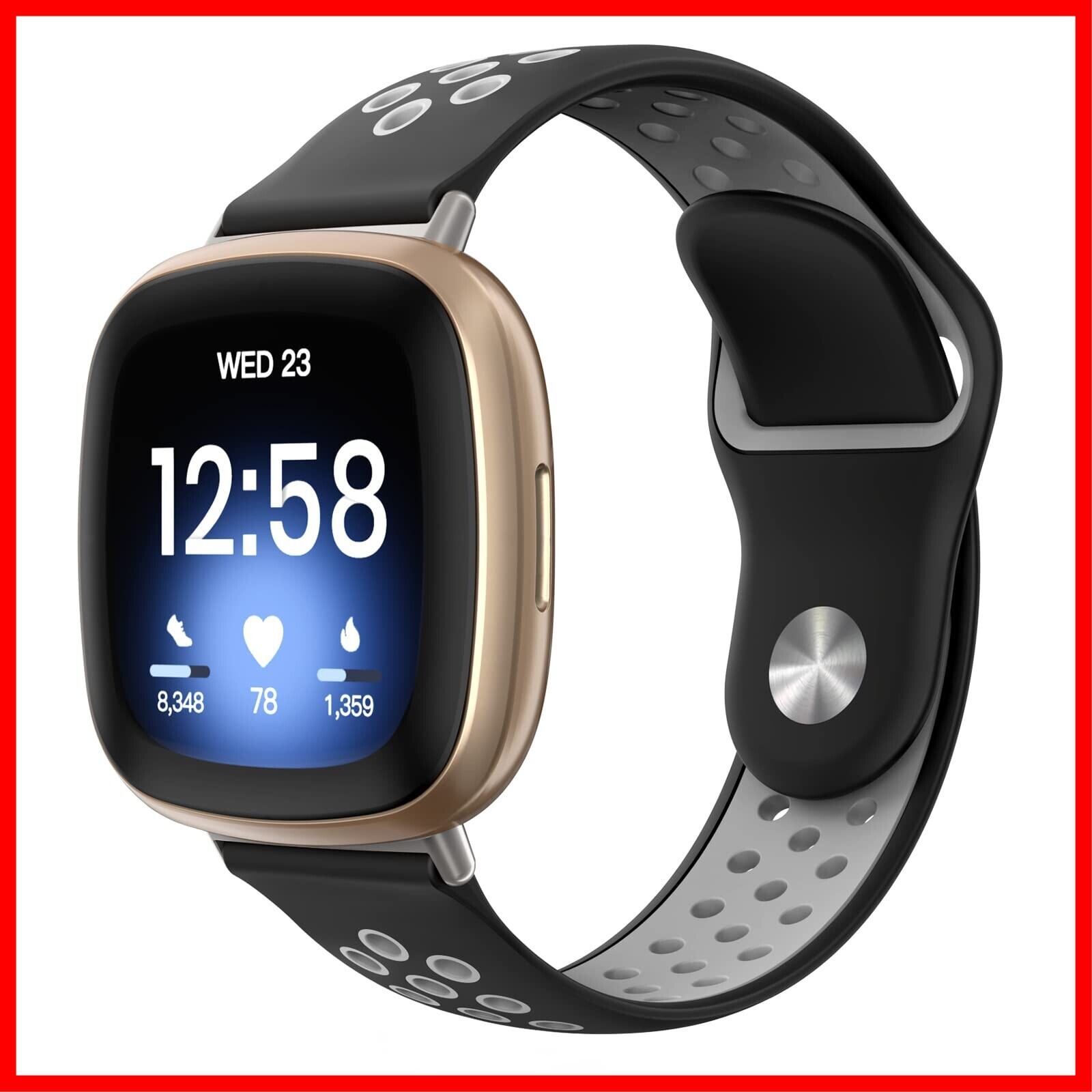 [ATiC] Fitbit Versa4/Versa3/Sense2/Sense バンド Fitbit Versa3/VersaSense交換用ベルト 取り替え スポーツベルト シリコン製 軽量 ソフト 取扱簡単 BlackMixGray | hananoki