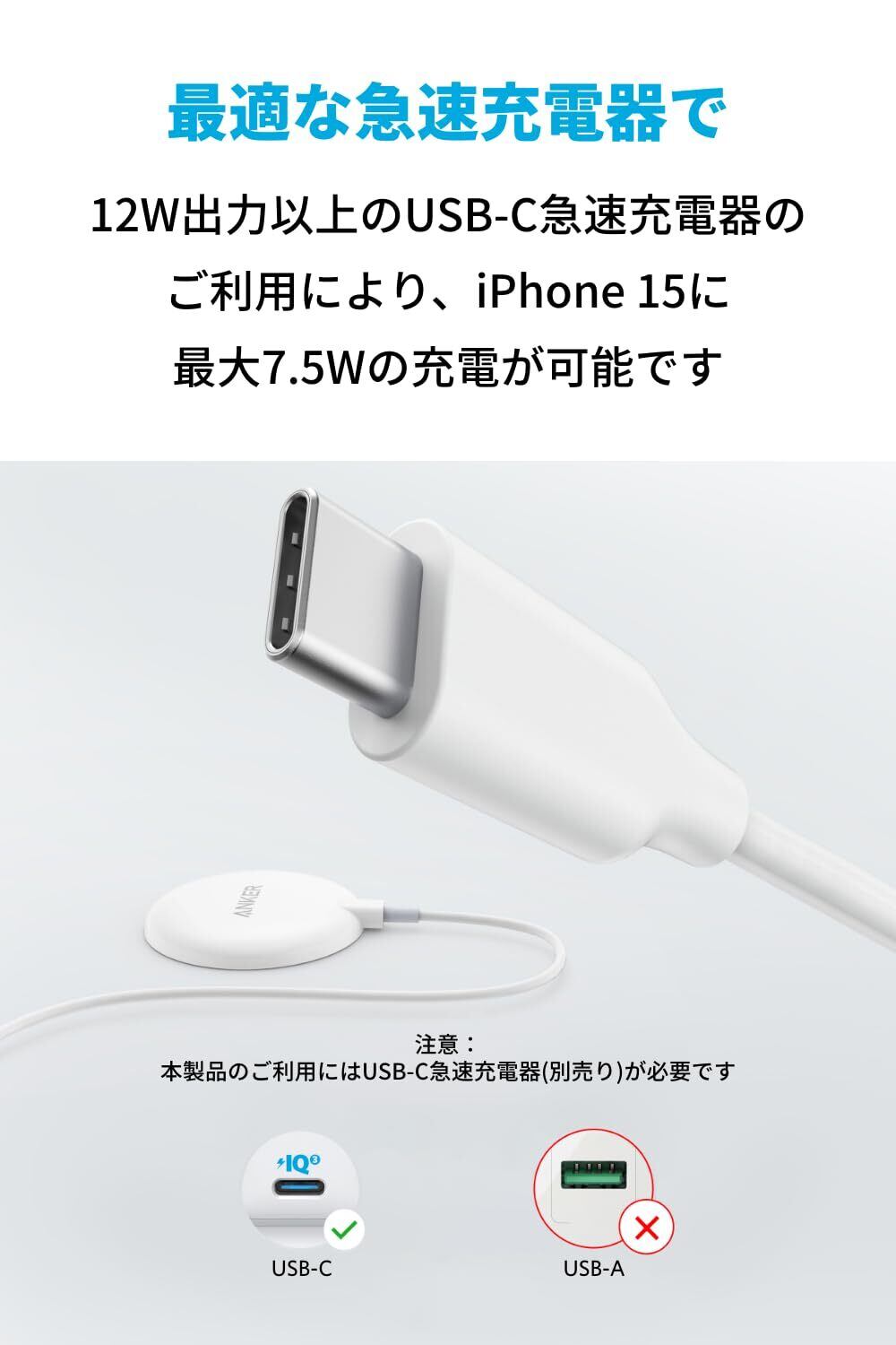 Anker PowerWave Magnetic Pad Lite(マグネット式ワイヤレス充電器) iPhone 15 / 14シリーズ ホワイト