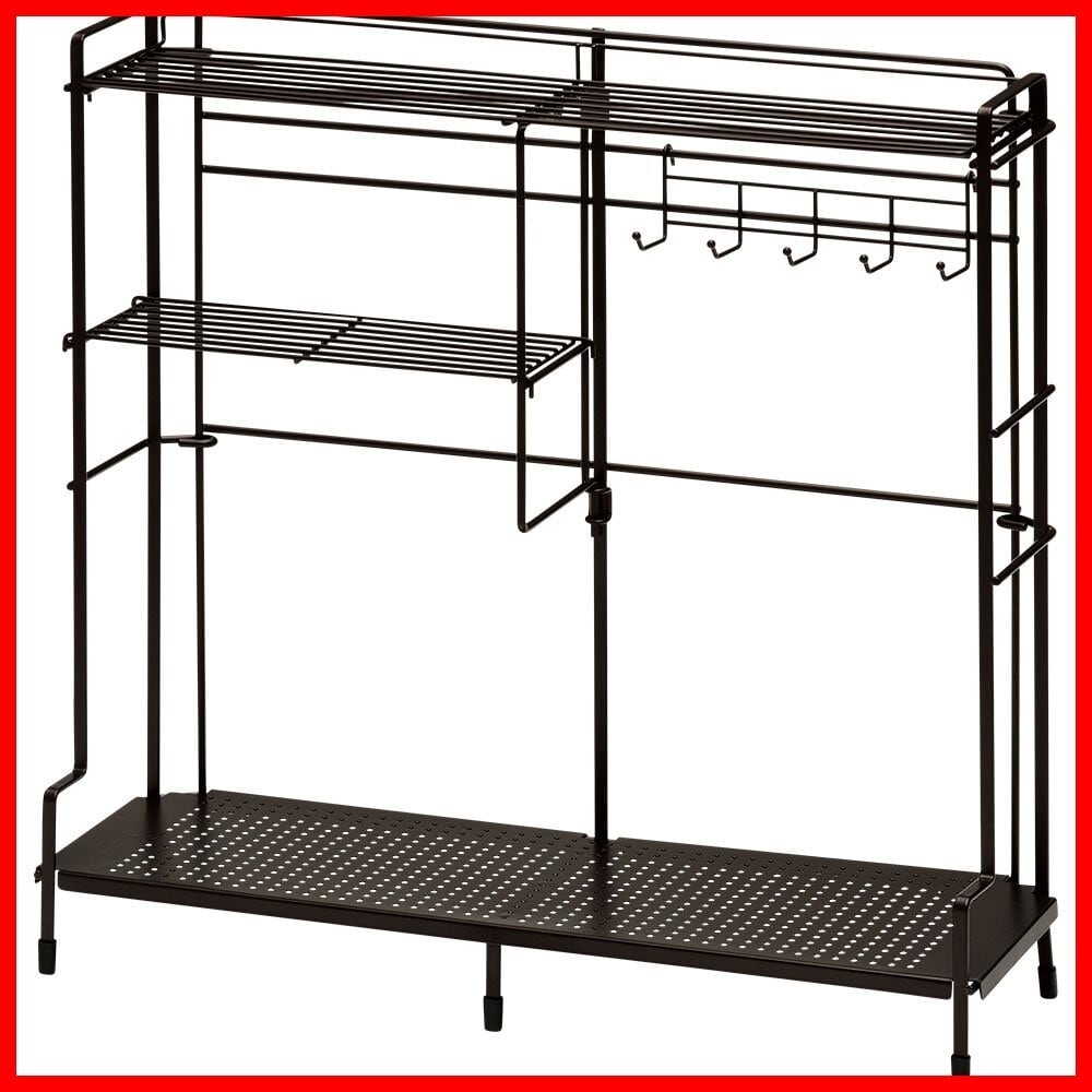 和平フレイズ(Wahei freiz) 鉄 コンロサイドラック 約52×15.5×50cm ブラウン 調味料 キッチンツール 収納 フック付