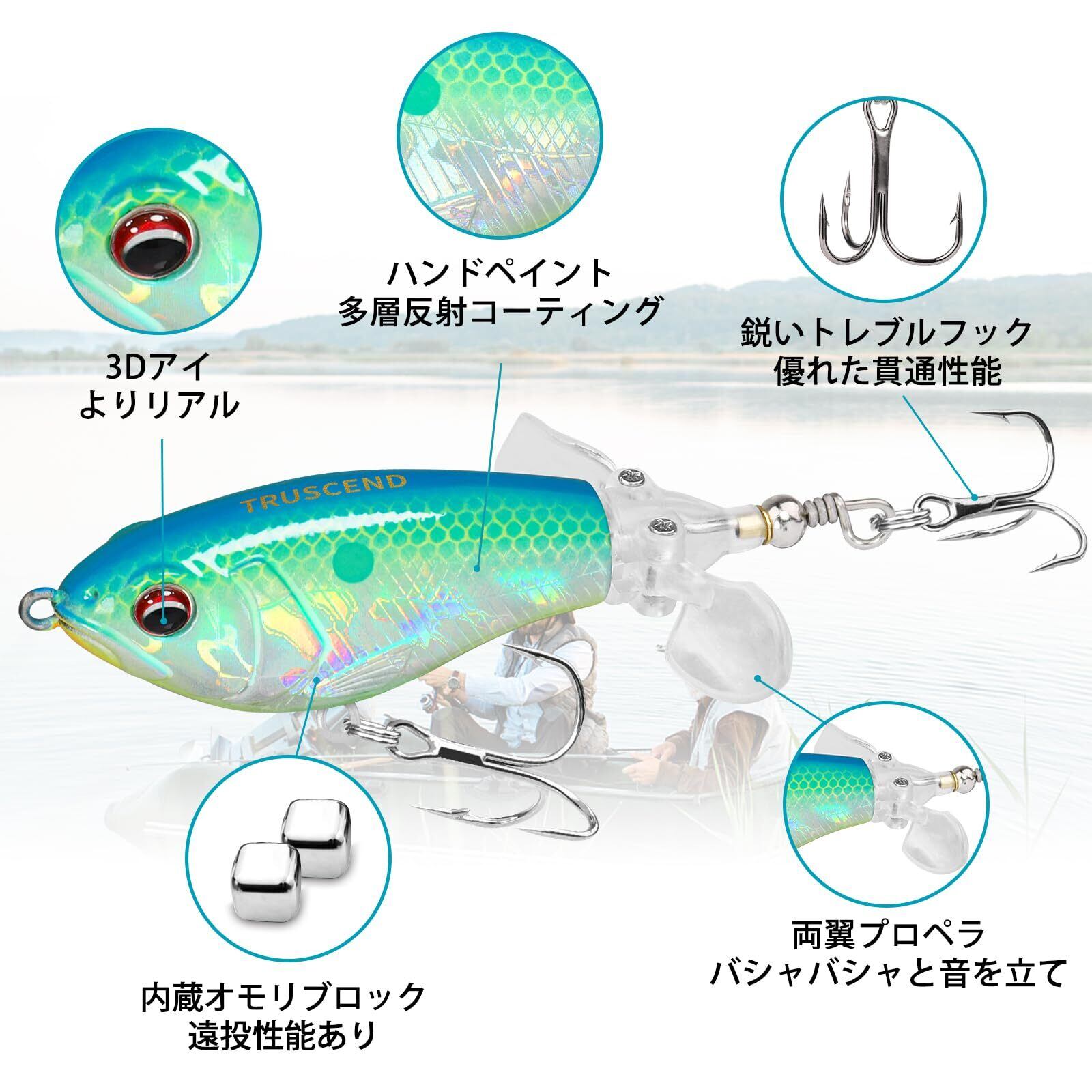 TRUSCEND(トラセンド)トップウォータールアー ポッパー 2種のプレーまとめ 3種コーティング工芸 プロペラ付き フローティング系 淡水・海水適用 雷魚 バス トラウト タイラバ シーバス 青物 ナマズなど 様々な魚に適用 贈り物にふさわしい | hananoki