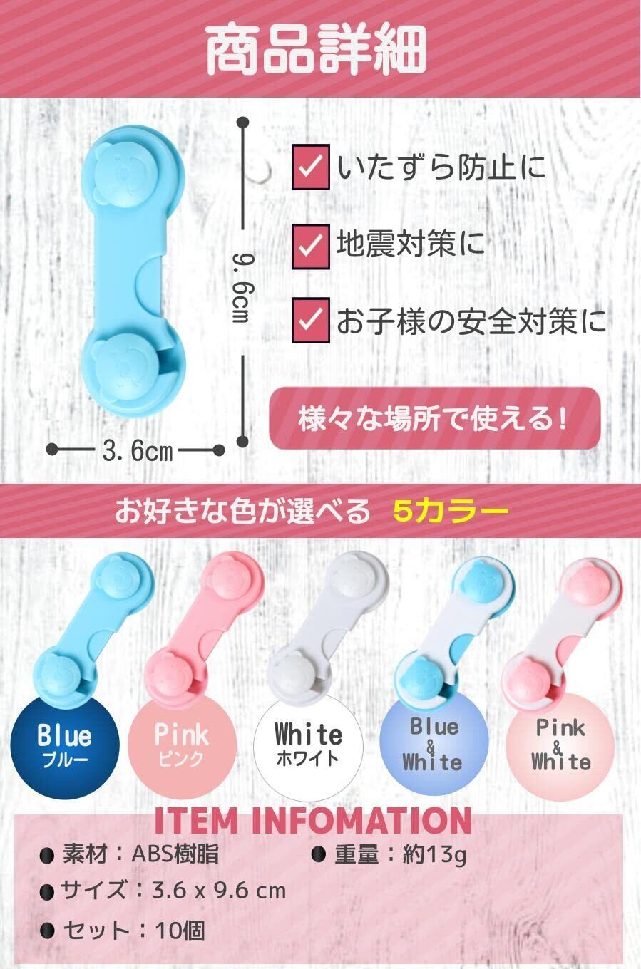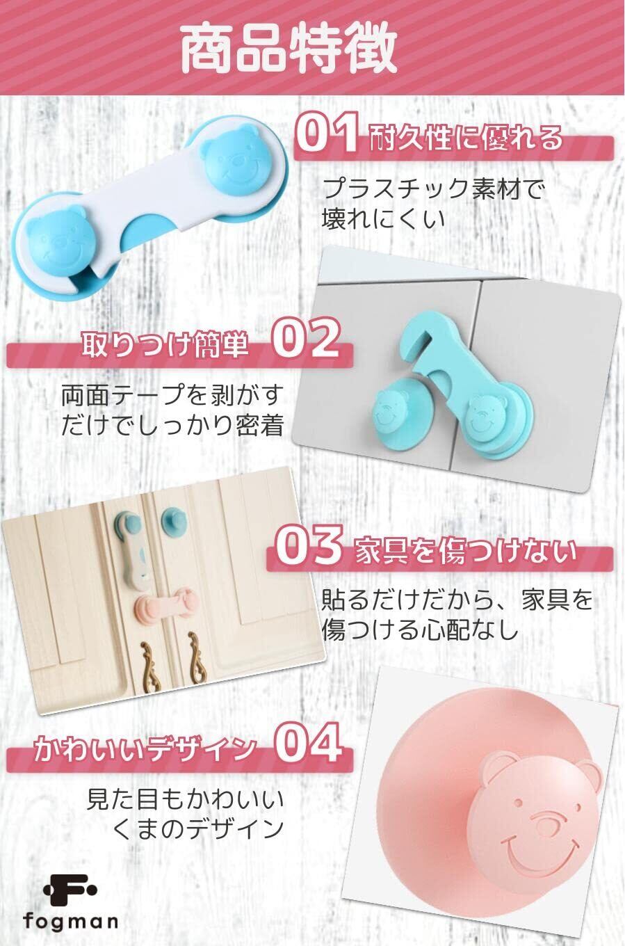 fogman ロック 引き出し ドア キャビネット 開き戸 食器棚 ストッパー 耐震 10個セット (ホワイト)