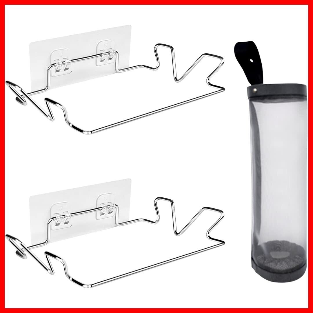 Zayookey レジ袋ハンガー ゴミ袋ホルダー ステンレス鋼 強力粘着 貼り付け 壁掛け 生ごみ入れ スペース節約 ホーム キッチン トイレ 浴室 キャビネット ドア ストレージ 多機能 便利 レジ袋ストッカー付き (レジ袋ホルダー2個+レジ袋ストッカー1個) | hananoki