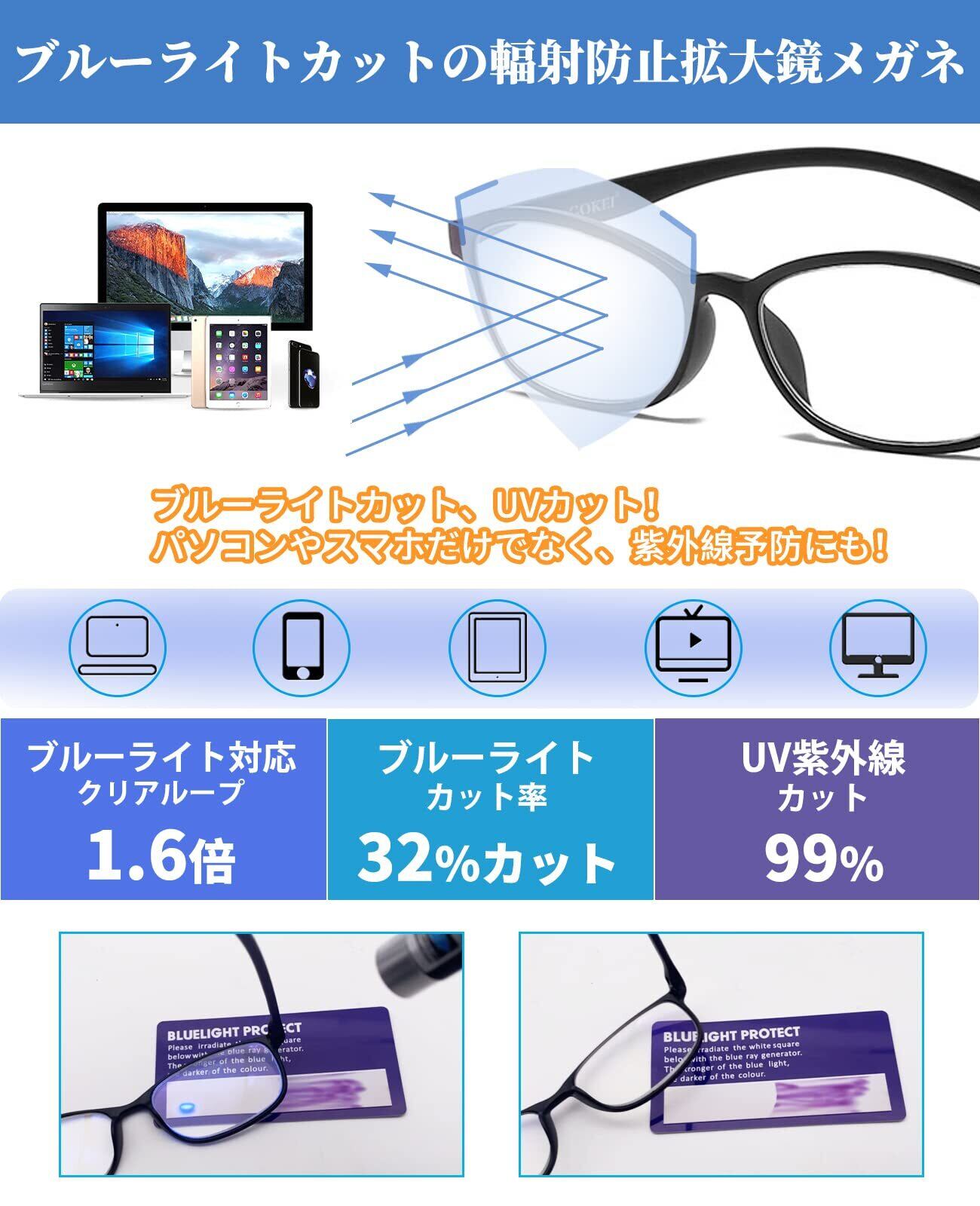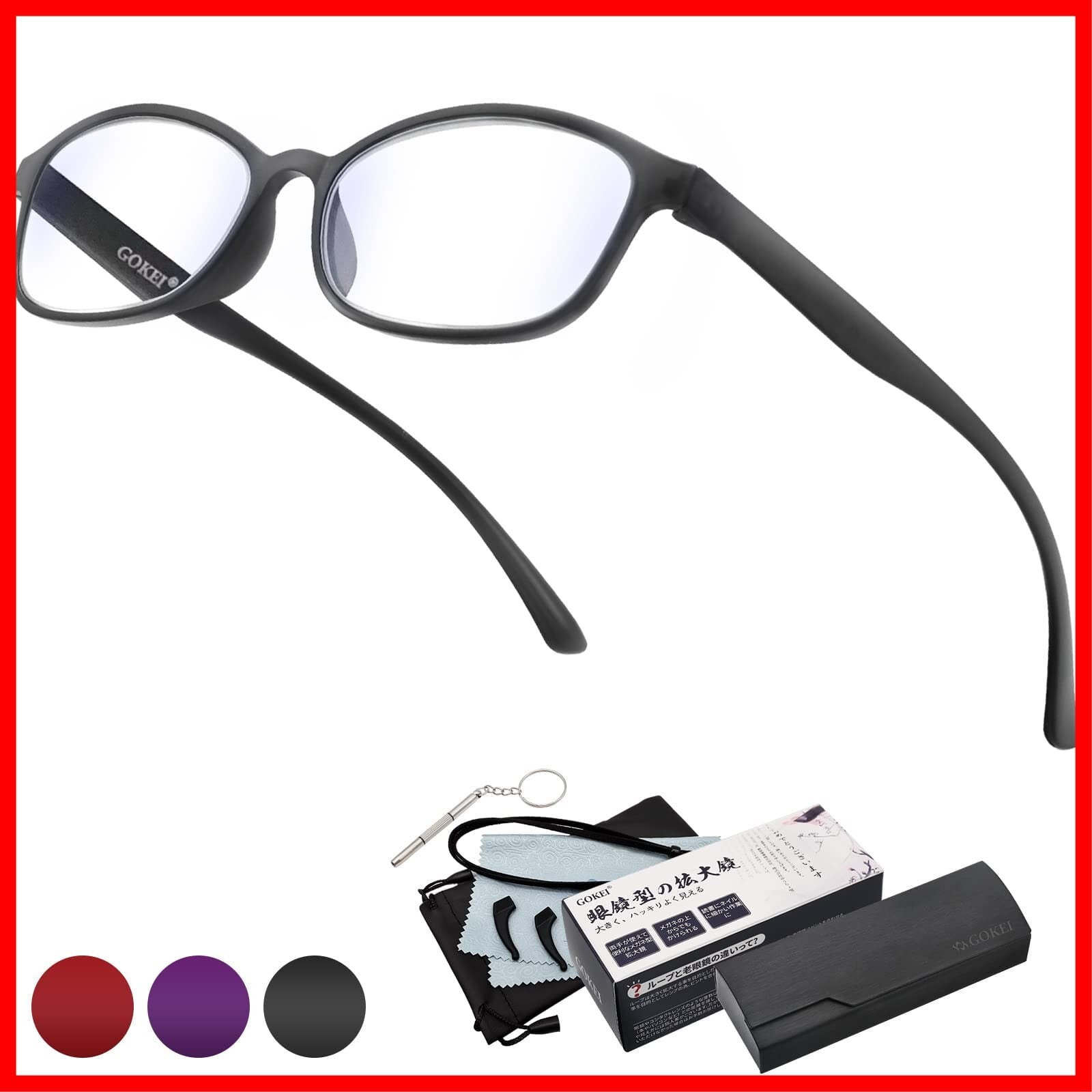 GOKEI メガネ型ルーぺ 拡大鏡 ルーペ 【1.6倍 ブルーライトカット機能 7点セット】 拡大 眼鏡 メガネ ルーペメガネ 眼鏡型ルーペ 拡大ルーペ ルーペ型眼鏡 メガネ型ループ 大きく見える 読書用 細かい作業 ブラック