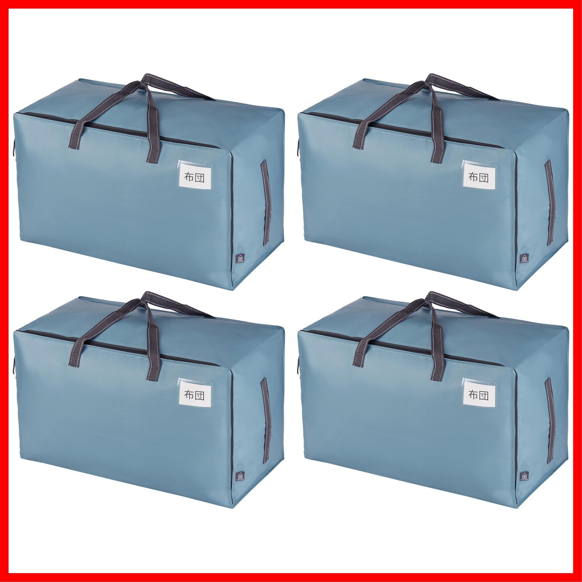 VENO 布団収納袋 103L大容量 引越し用ダンボール 代替品 布団袋 3面ファスナー 2ペア持ち手付き 耐水 高耐久 折りたたみ ラベルポケット付き 収納ケース 引越し 布団収納 衣類収納 押入れ収納 (ライトブルー 4枚セット) | hananoki