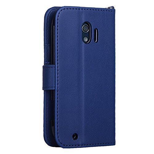 wisers らくらくスマートフォン me F-03K 対応 手帳型スマホケース (ダークブルー) ストラップ 2種付き (ハンドストラップ/ネックストラップ) 2018 新型