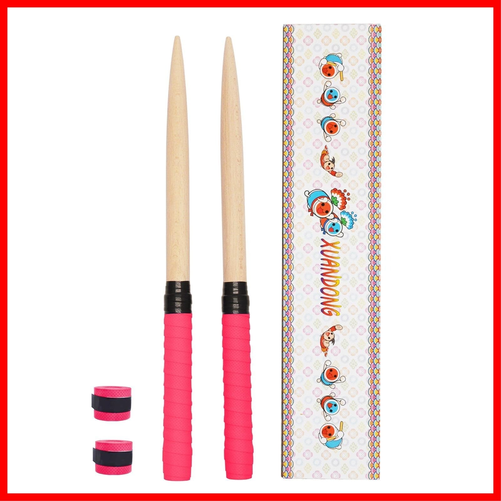 XUANDONG 適用太鼓の達人 マイバチ 太鼓バチ 交換用グリップ 木製 硬材 テーパー加工 2本セット 380ミリ-25ミリ ロール用 アーケードで大活躍 予備グリップテープ2個付き 5色選べる (赤) | hananoki