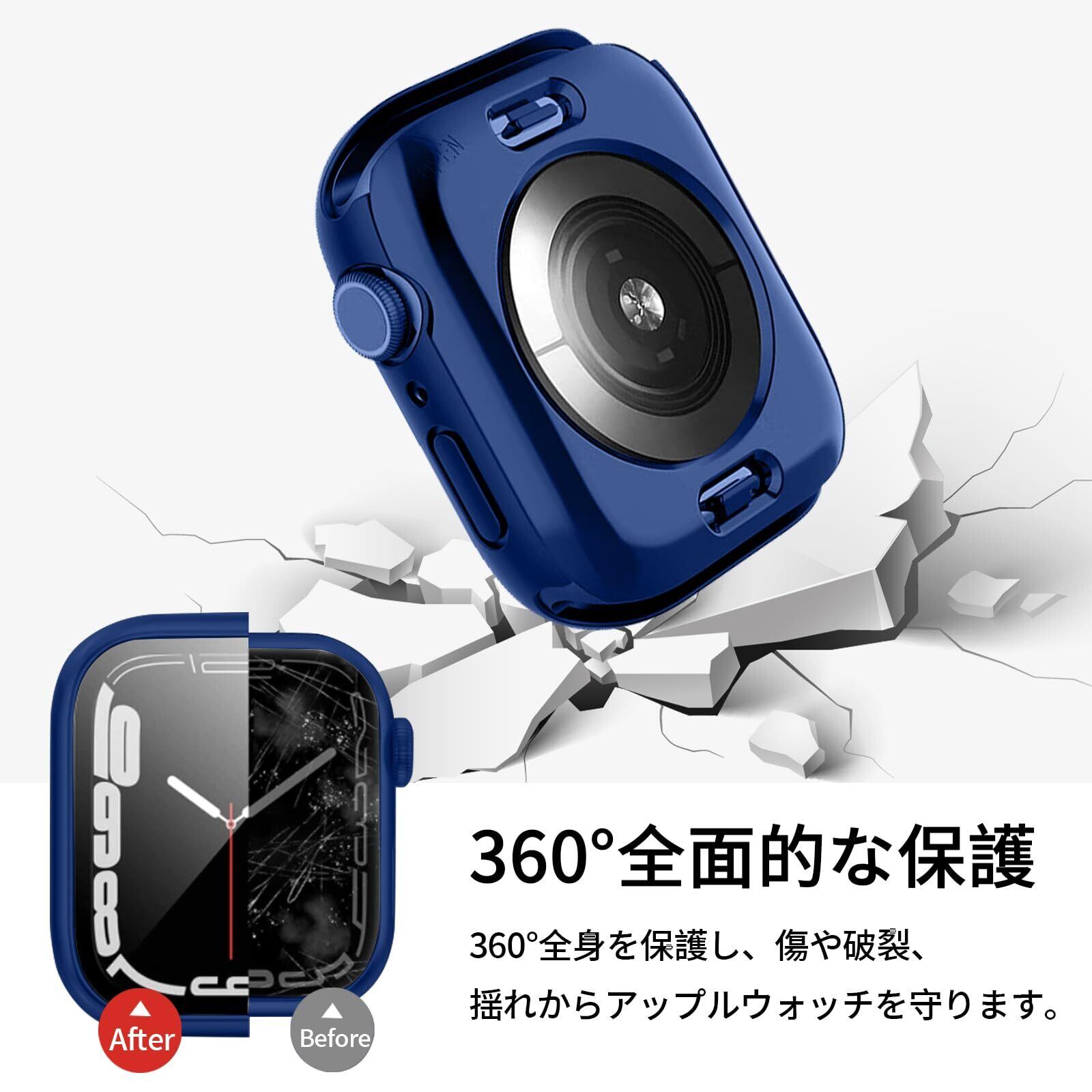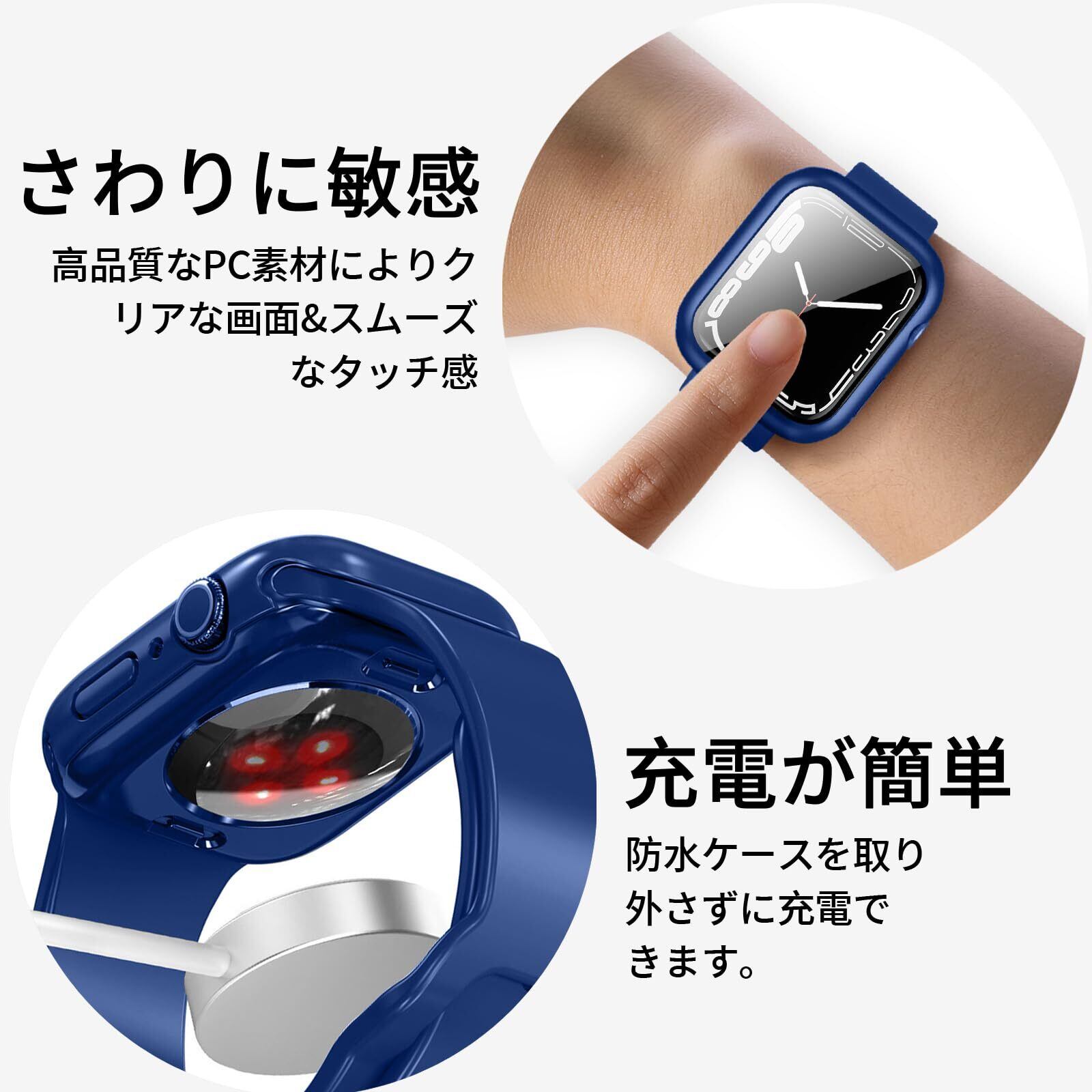 BELIYO Apple Watch ケース 45mm 対応 アップルウォッチ カバー 防水 一体型 360 Apple Watch カバー 全面保護 二重構造 アップルウォッチ ケース PC素材 日本旭硝子材 キズ防止 軽量 強化ガラス Apple Watch Series 9/8/7 アップルウォッチ9/8/7 対応(45mm,ブルー) | hananoki