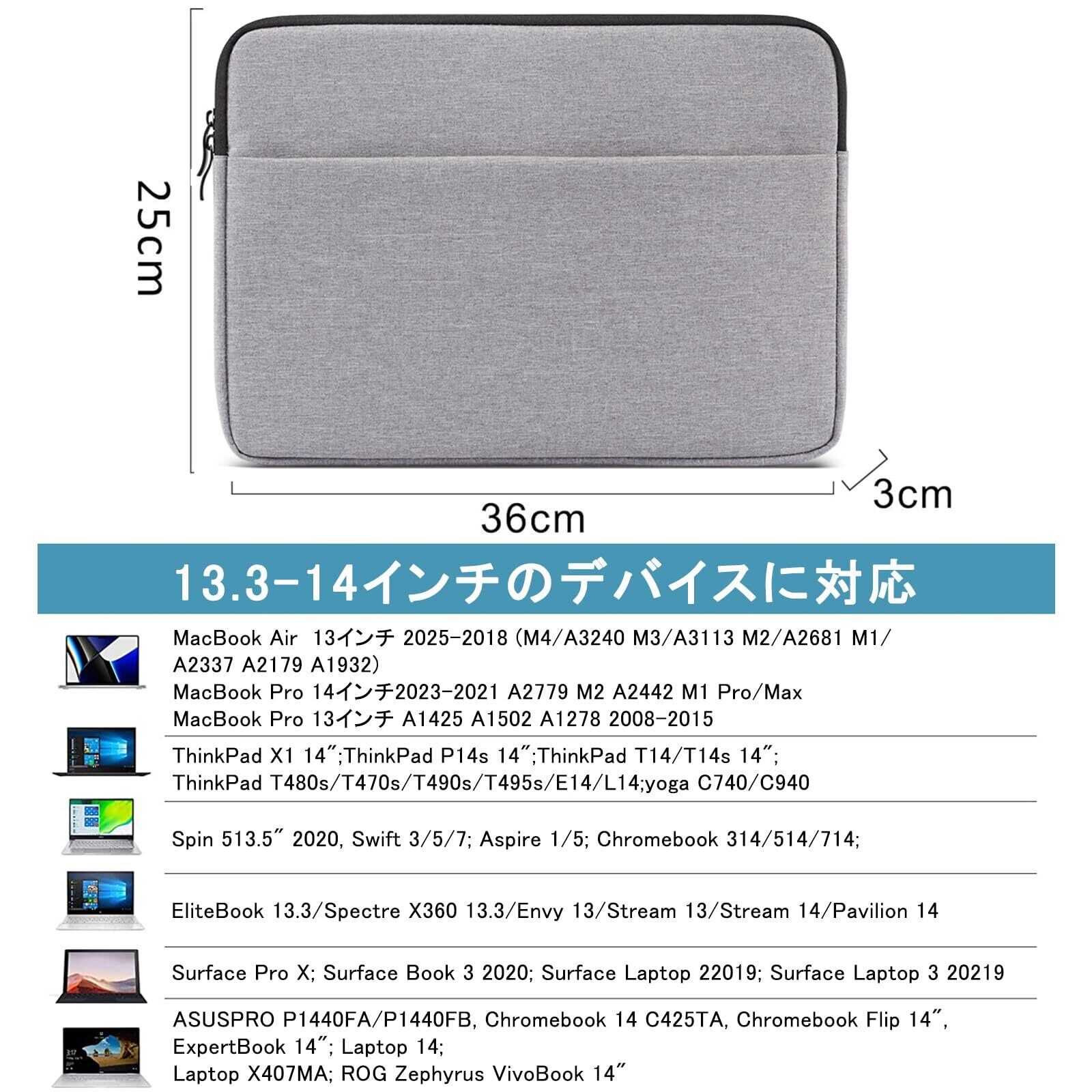 ノートパソコン ケース 13-14インチ MacBook Pro 2024 /MacBook Air M4/M3/M2/M1/MacBook Pro M4/M3/M2/M1 全面保護 耐衝撃 防水 ノートPC ケース 対応 VAIO S13/LIFEBOOK WU2/G2/WU4/G2 タブレット インナーバッグ スリーブケース(グレー、前面ポケット)