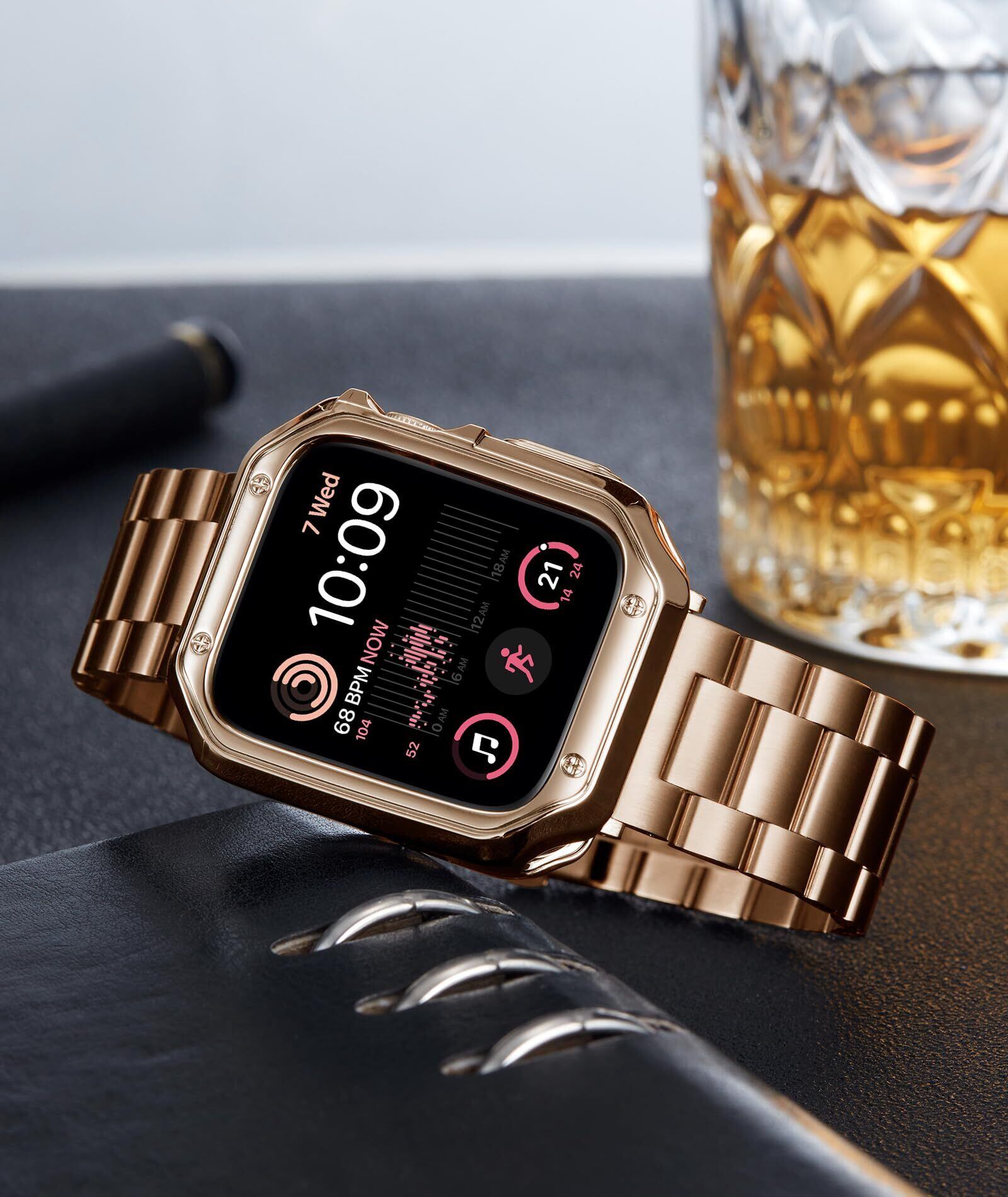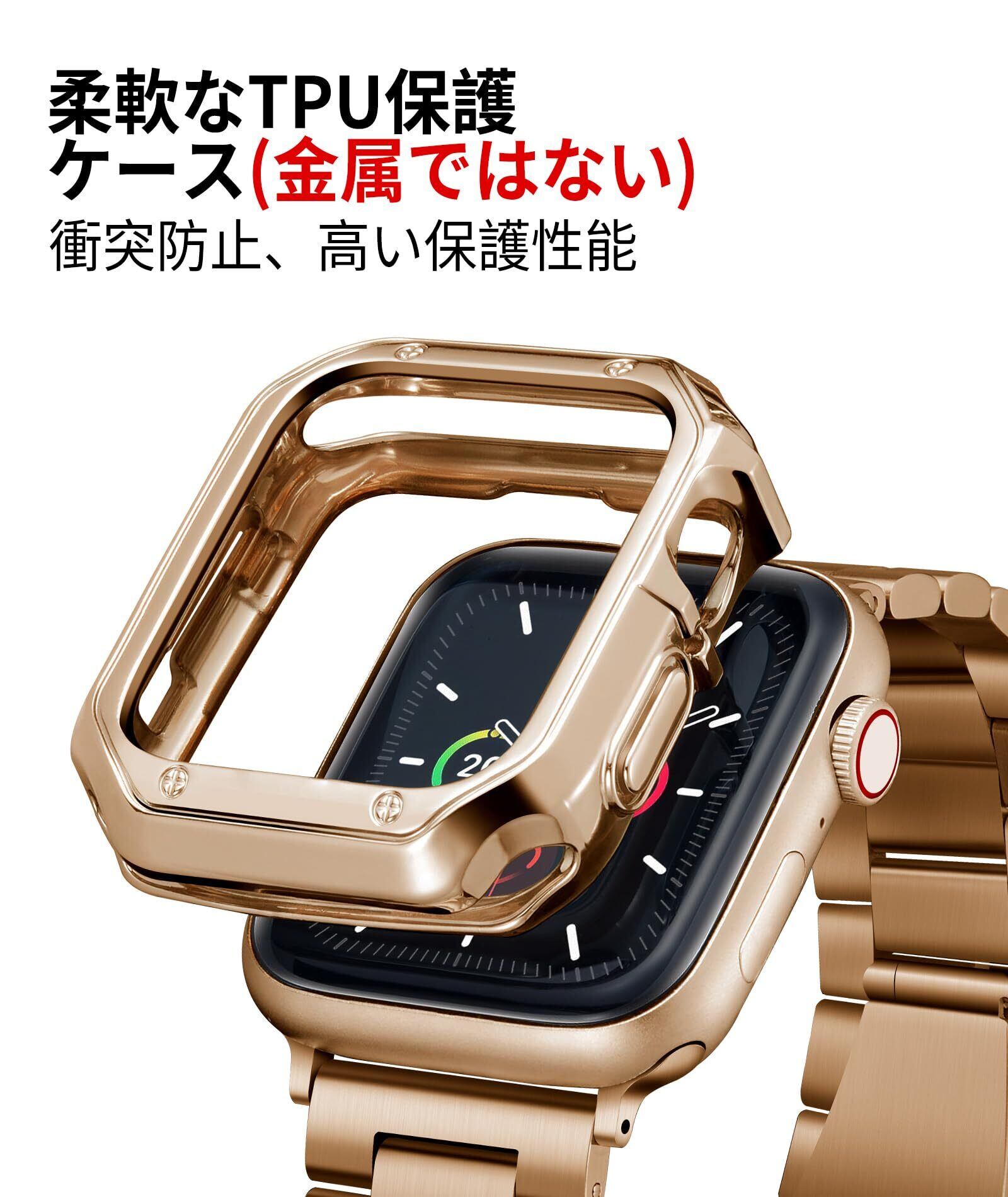 コンパチブル Apple Watch バンド 46mm 45mm 44mm 42mm 41mm 40mm 38mm コンパチブル アップルウォッチバンド ステンレス ローズゴールド ポリッシュTPUケース コンパチブルiWatch ベルト Series 10/9/8/7/SE2/SE/6/5/4/3/2/1(38mm/40mm/41mm)