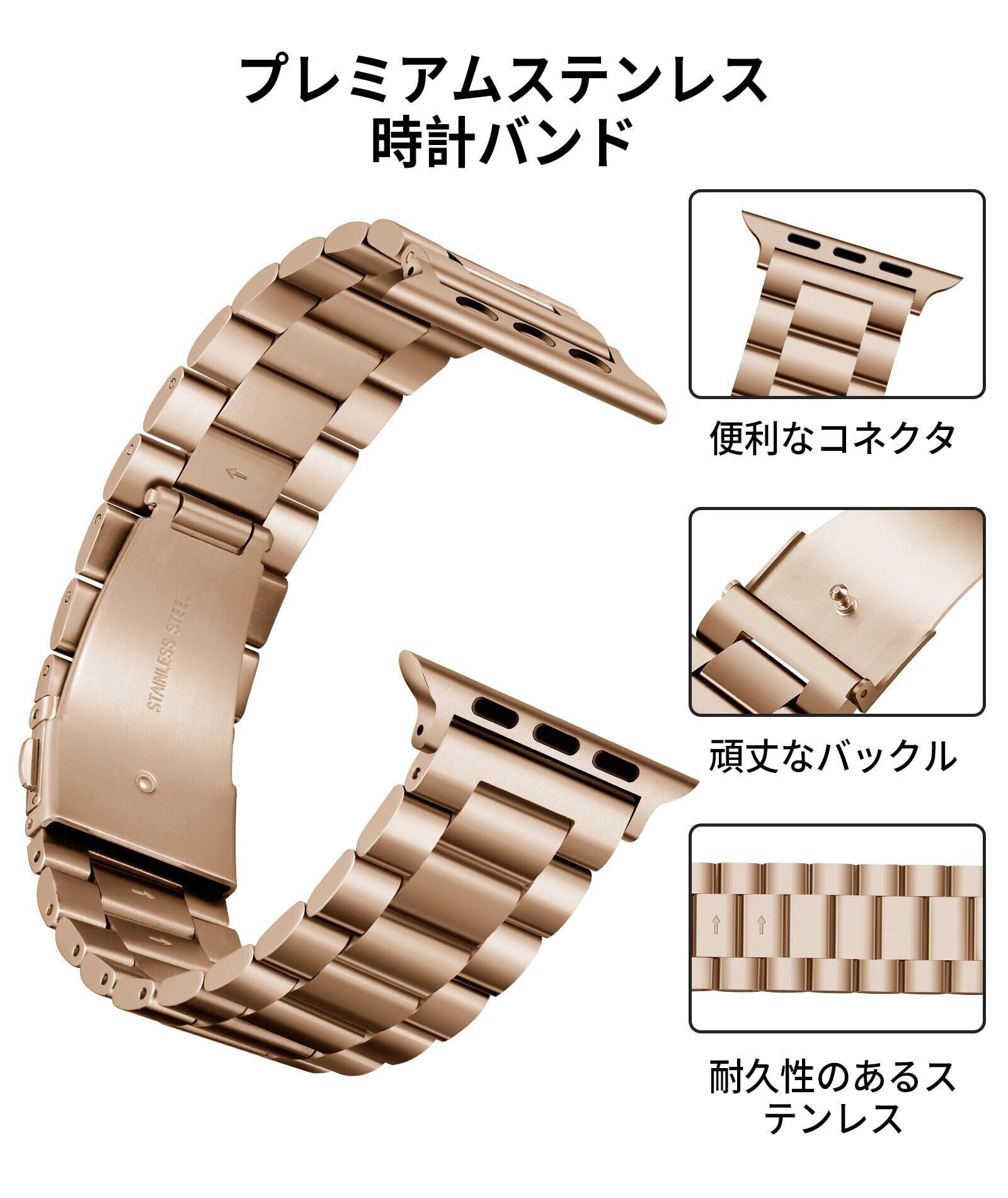 コンパチブル Apple Watch バンド 46mm 45mm 44mm 42mm 41mm 40mm 38mm コンパチブル アップルウォッチバンド ステンレス ローズゴールド ポリッシュTPUケース コンパチブルiWatch ベルト Series 10/9/8/7/SE2/SE/6/5/4/3/2/1(38mm/40mm/41mm) | hananoki
