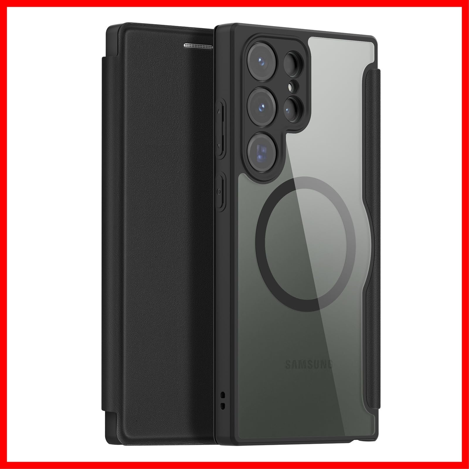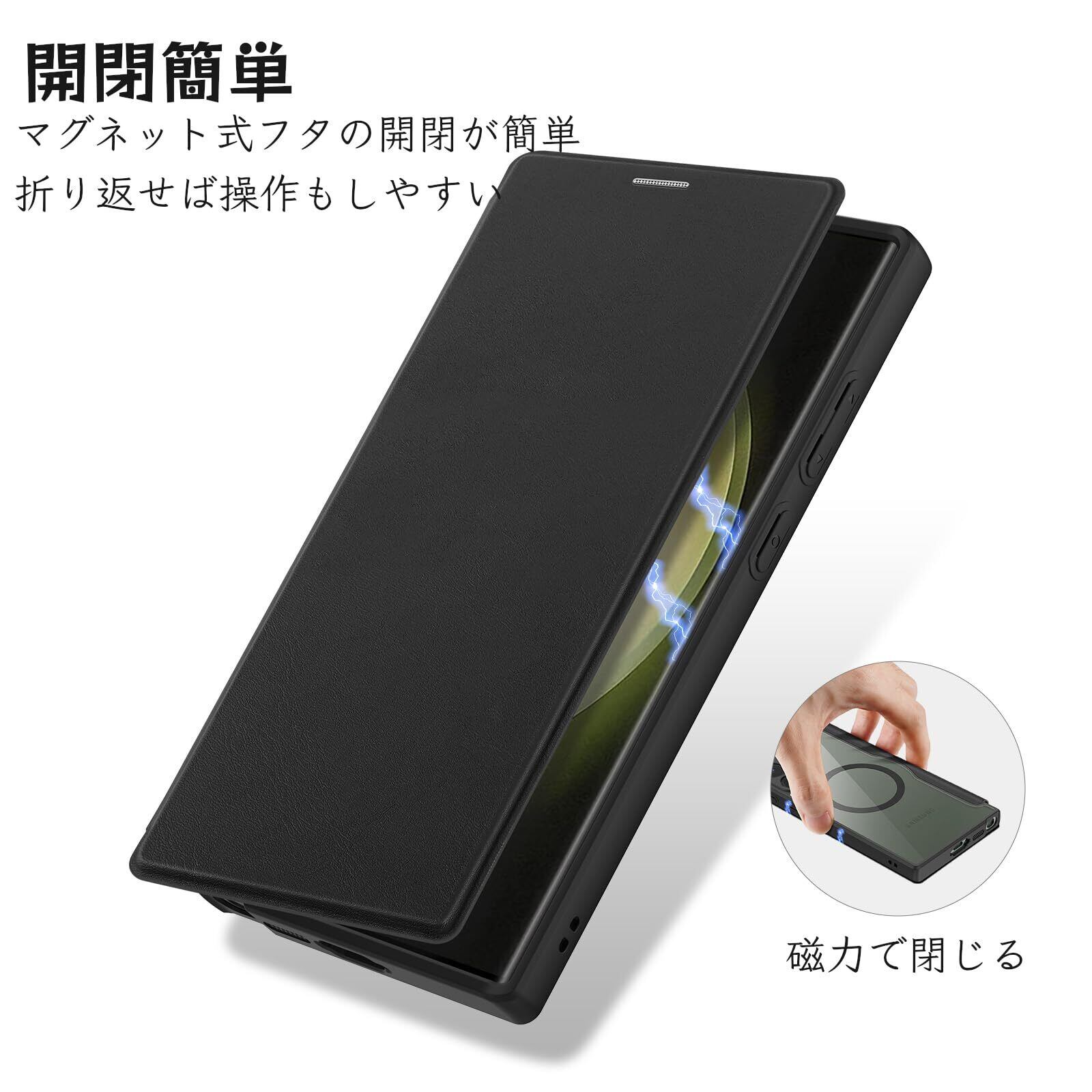 Galaxy S23 Ultra 5G ケース 手帳型 SC-52D / SCG20 背面クリア Magsafe対応 ワイヤレス充電 PU+PC カード入れ ストラップホール おしゃれ シンプル 薄型 軽量 ギャラクシーs23ウルトラ スマホケース (Galaxy S23 Ultra, ブラック)