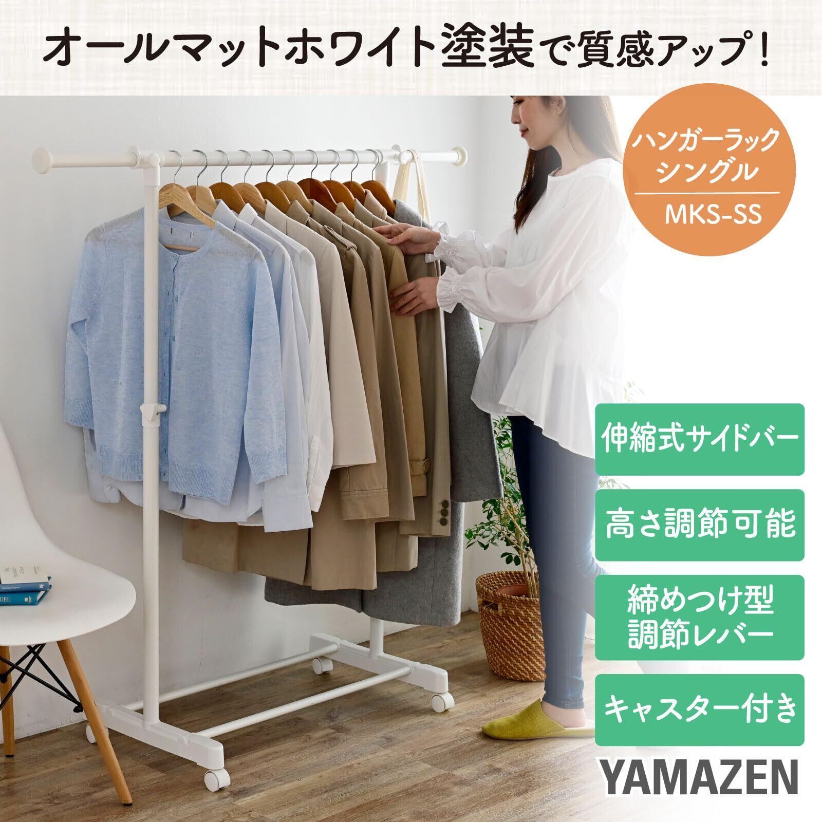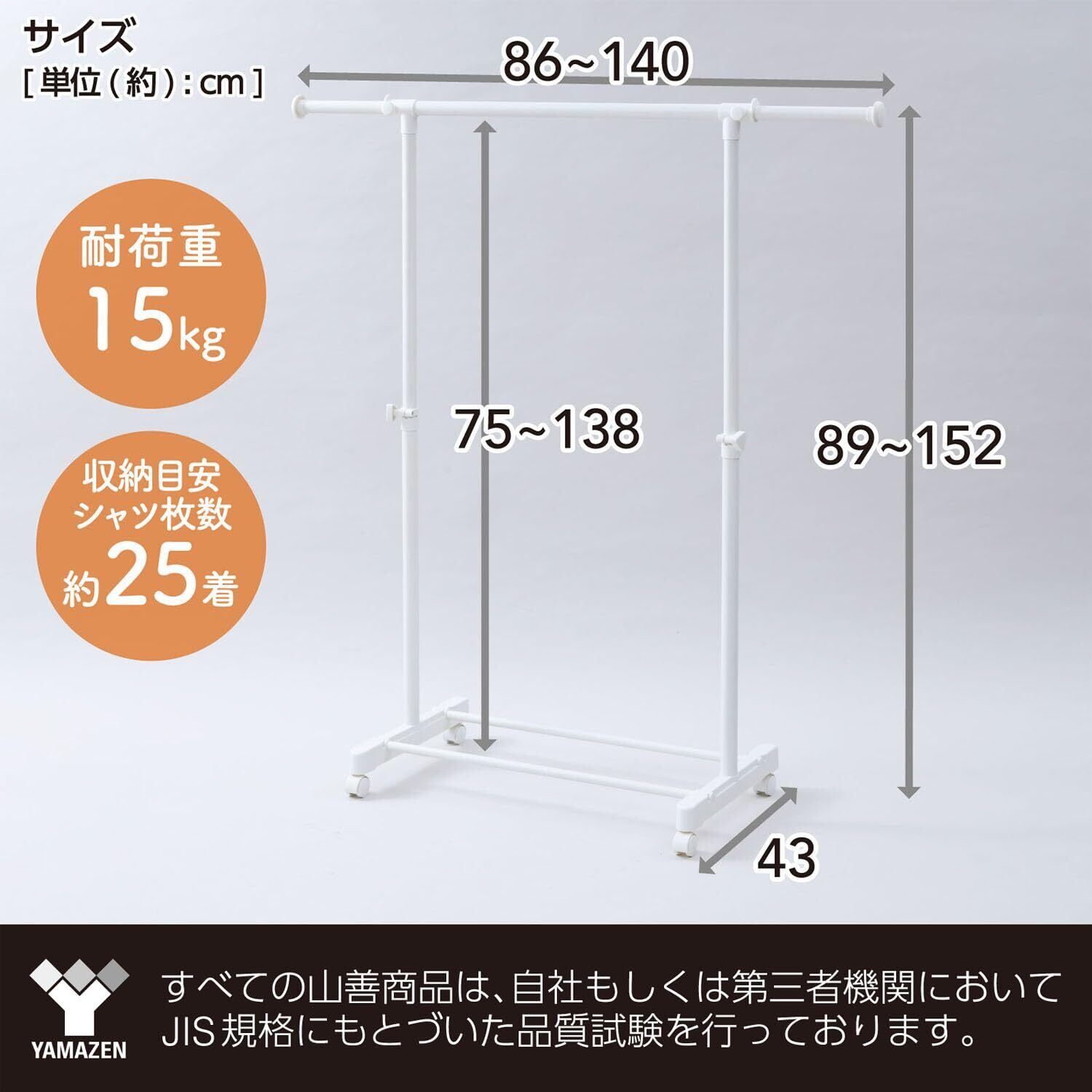 山善(YAMAZEN) ハンガーラック キャスター付き 縦/横伸縮 シングル 幅86-140×奥行43×高さ89-152cm 組立品 オールホワイト MKS-SS(AWH)