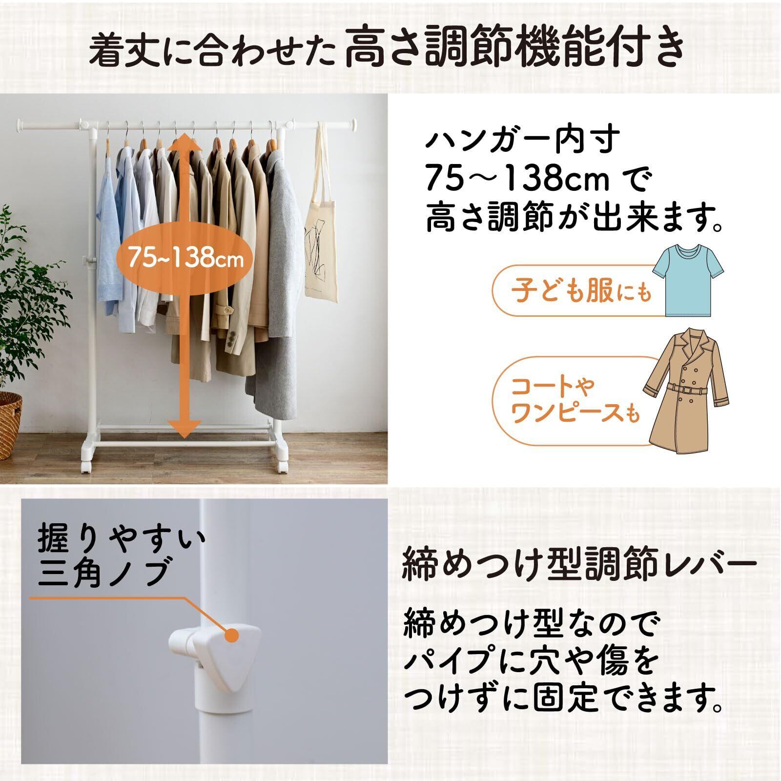 【パイプに跡が付きにくい高さ調節機能】高さを89-152cmまで調節できるので、ロングコートにも対応しています。締め付け型の調節レバーなので、パイプに穴や傷ができにくくなっています。