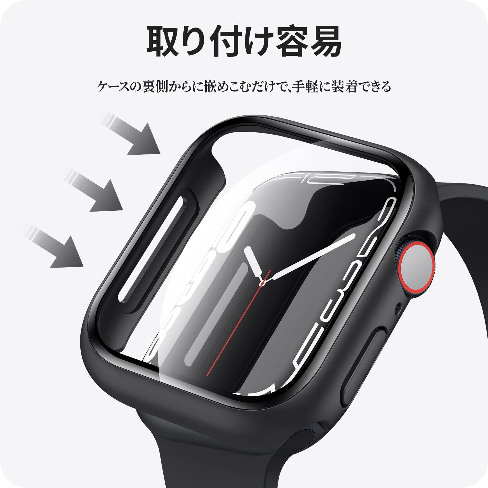 NIMASO 対応 Apple Watch Series 9 / 8 / 7 45mm 用 ケース 対応 アップルウォッチ 9 / 8/ 7 45mm apple watch7ケース 保護カバー ガラスフィルム 一体型 PC素材全面保護(ブラック) NWC21J358 | hananoki