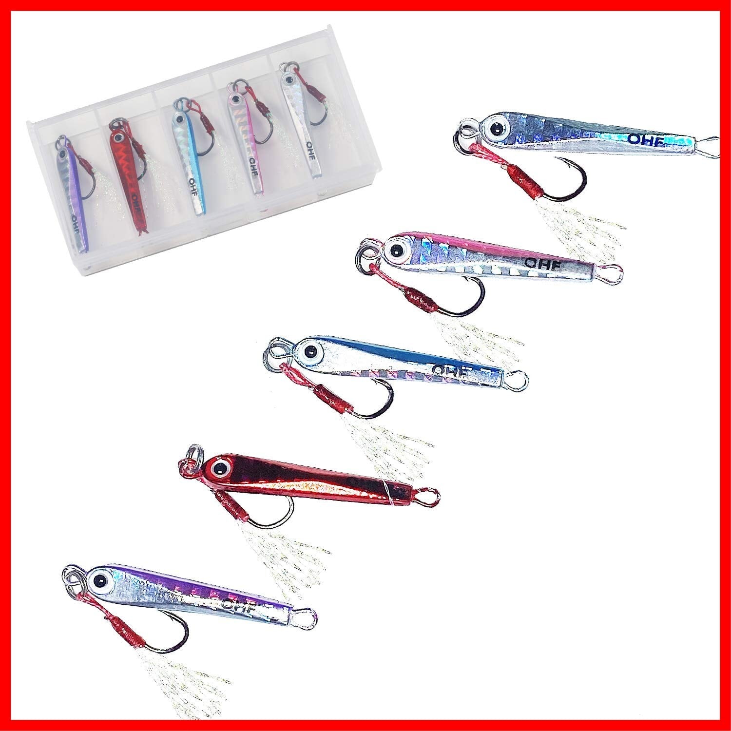 OHF ルアーセット メタルジグ アジング セット 4g 5個セット / 5g 5個セット アシストフック ティンセル付き ケース付き