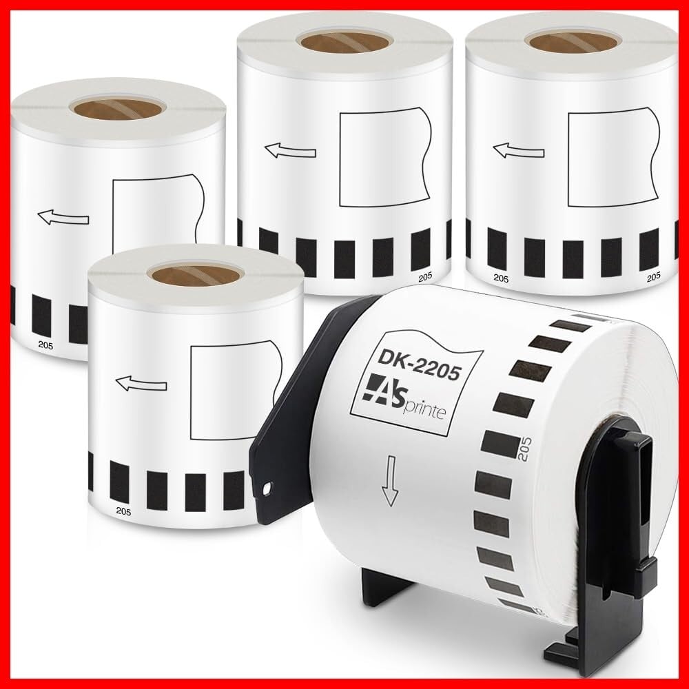 [ 含みます ]: 感熱紙ラベル 5ロール、専用ホルダー 1個。[ 互換型番 ]: 互換ブラザー工業 長尺紙テープ(大) DK-2205