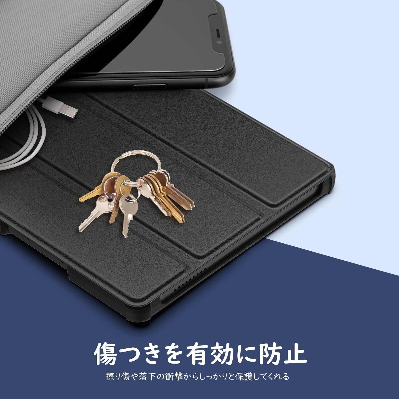 「上質な素材採用」 蓋表面は手触りが良く高級感のあふれる耐久性に優れた高級PUレザーで、バックケースは耐衝撃性の高く頑丈なPC素材を採用しており、裏地材質は液晶表面に優しいマイクロファイバーの仕上がりで、タブレット本体をやわらかく包み込みながら、不意による落下の衝撃から緩和できて、タブレットに最高の保護力を提供してくれます。