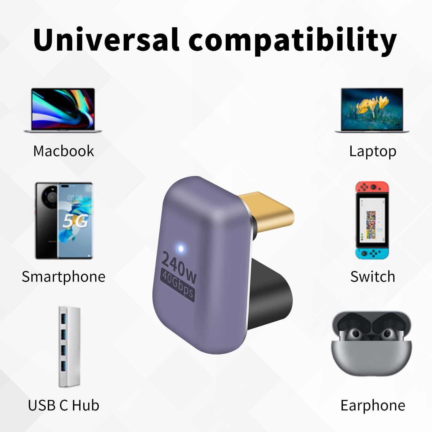 Poyiccot USB Type C 変換 アダプタU字、 180° USB C U字型アダプタ【240W/40Gbps/ 8K@60Hz】USB Type C オスメス 延長コネクタ、高速充電データUSB 4.0 USB C コネクタ 雷電 3/4 対応 MacBook Air/Pro/携帯電話用、 1個 セット