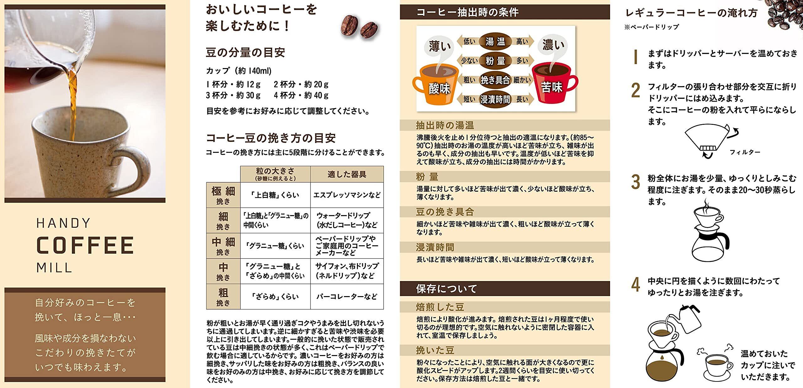 容器容量:(約)120ml、豆容量:(約)17g(本体に入る焙煎豆の量)