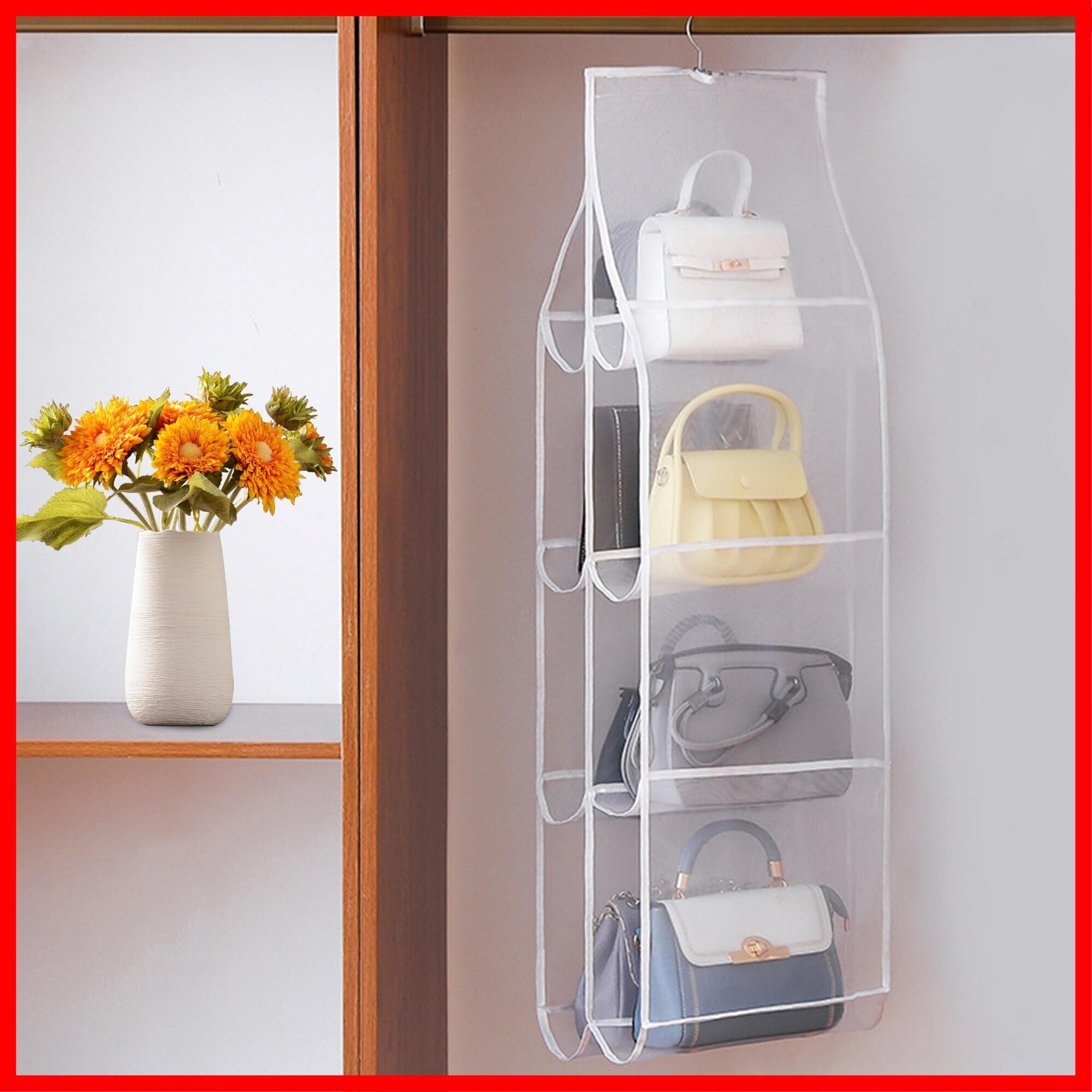 seOSTO バッグ 収納 吊り下げ収納 カバン 収納 4段式 折りたたみ 鞄 収納 両面収納 8個収納可能 水洗い可能 クローゼット 収納 バッグ収納ラック 省スペース 取り付け簡単 小物入れ収納ポケット 壁掛け 玄関 キッチン カバン掛け カバン収納 かばん 収納(ホワイト 4段式) | hananoki