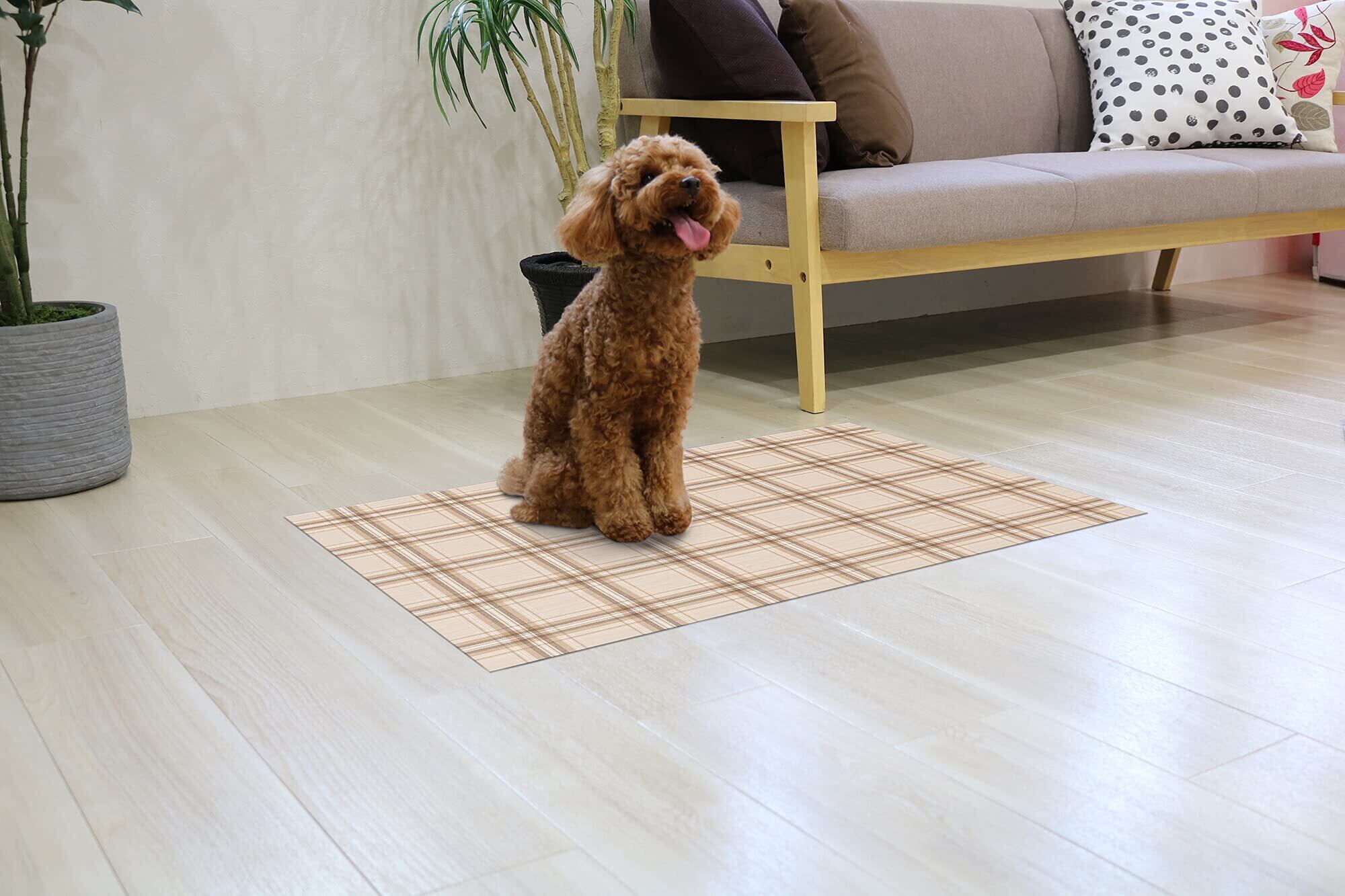 明和グラビア ペット用 防滑・消臭・防水マット INSF-202 60cm×90cm チェック柄 ベージュ M
