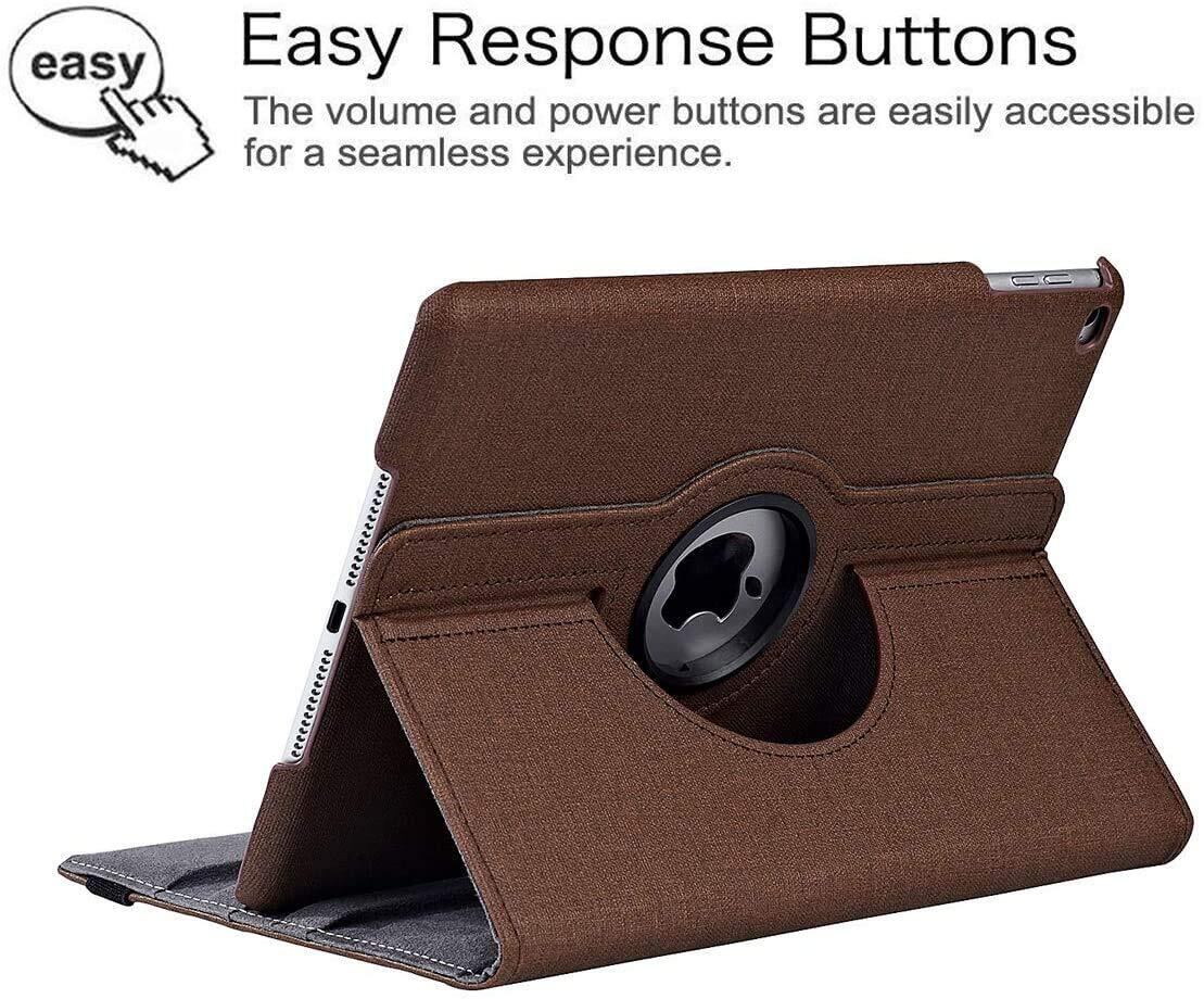 JXCX iPad 9.7 2018/2017ケース 新型(Newモデル)/iPad Air/iPad Air2カバー iPad 9.7インチ(第6、5世代)軽量 手帳型 360度回転スタンド オートスリープ機能 3段階調節可能 固定バンド 脱落防止耐衝撃 耐久性 おしゃれデニム生地 (茶褐色)