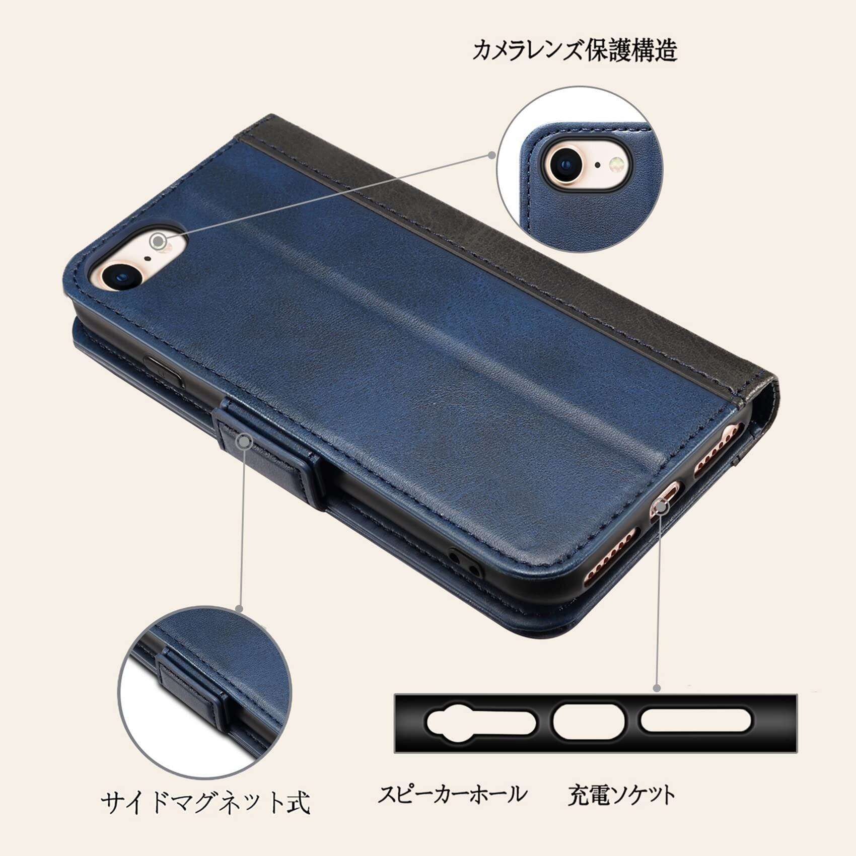 iPhone SE ケース 第2/3世代 2022 Rssviss カバー 手帳型 マグネット W3 iPhone se3 、iPhone se2、iPhone8、iPhone7対応 4.7inch ダークブルー | hananoki