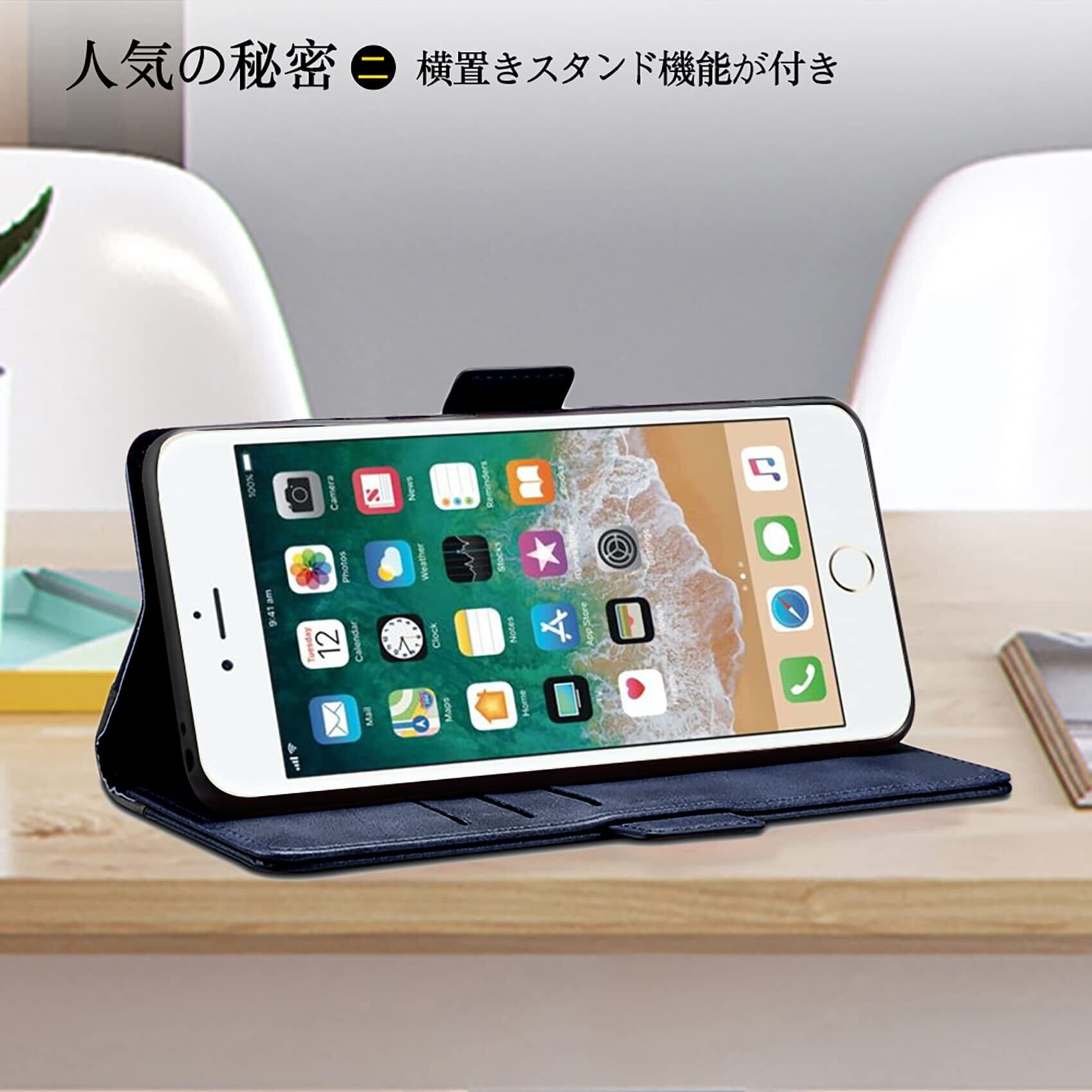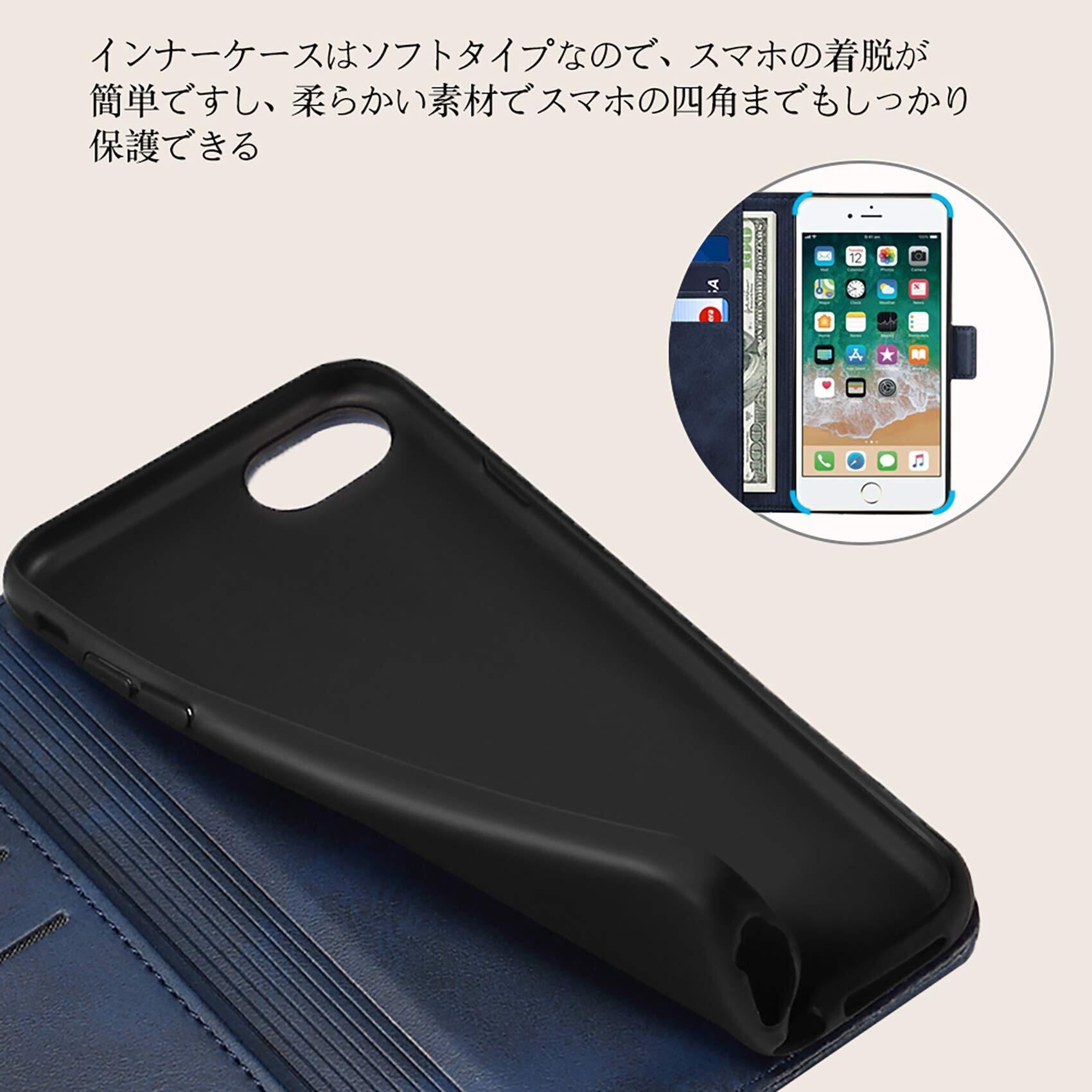 手帳型ケース 外部のカバーは合皮レザー素材を採用しており、放熱性や耐衝撃が良く、傷や埃を防ぐことができるiPhone7カバーです。インナーケースは弾力性のあるソフト素材を採用しており、角までしっかり保護できるiPhone8ケースです。