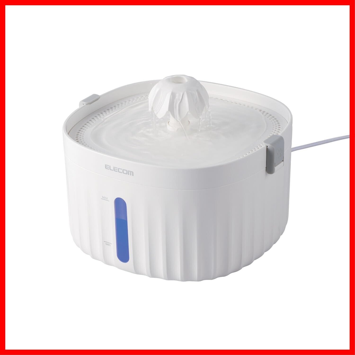 エレコム 自動給水器 容量2L 静音 騒音レベル16db以下 フィルター式 高さ調整可能 ロック機能付 4つの水流 猫 中小型犬用 サイレントアクア 幅204×奥行191×高さ154mm ホワイト PET-WD01WH