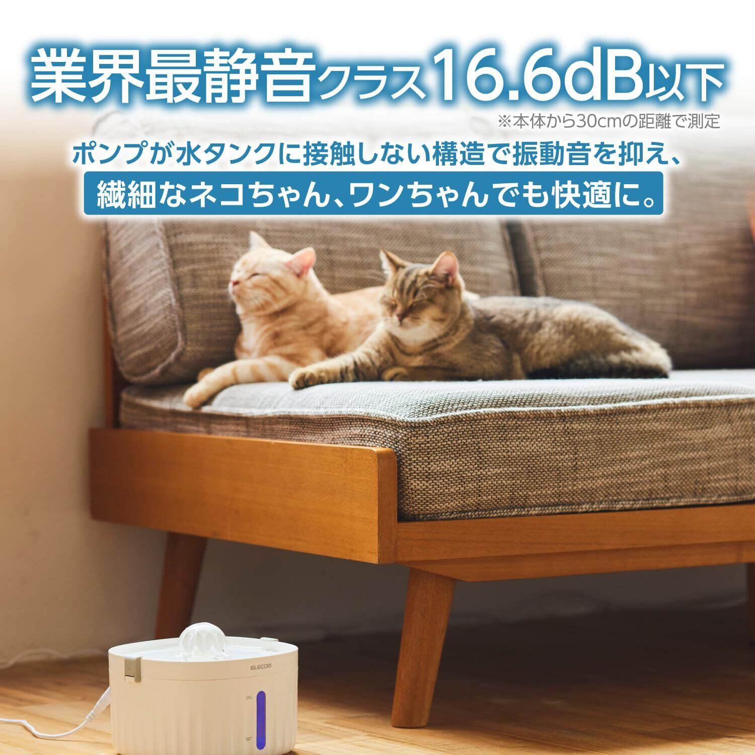 高密度3層構造のフィルターで、飲みやすいキレイなお水をどんなときでも。超静音設計でネコちゃん・ワンちゃんも安心の自動給水器です。※本製品が販売終了となった場合、販売終了から1年間は交換用軟水化フィルター(型番:PET-WD04FT)の販売を継続します。